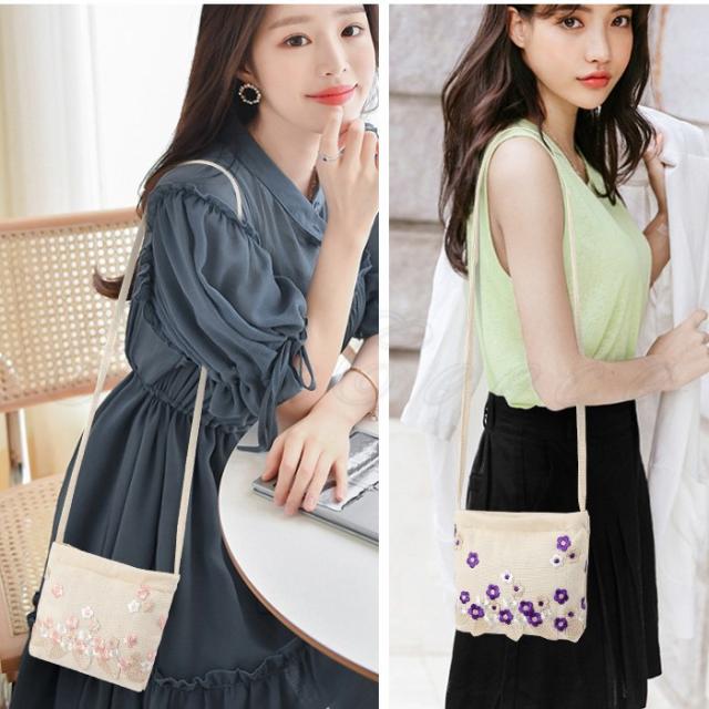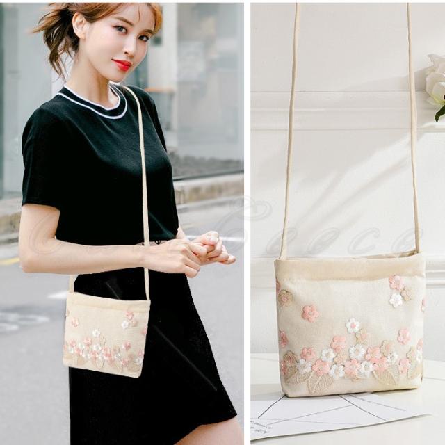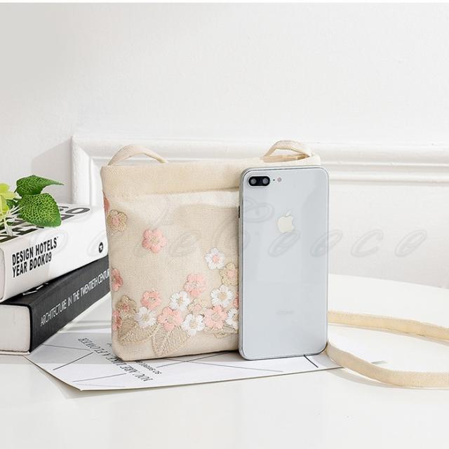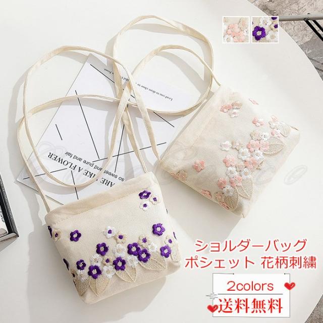 ショルダーバッグ レディース ポシェット 花柄 刺繍 ファスナー付き 軽量 カジュアル 折りたたみバッグ 可愛い 女性用 きれいめ おしゃれ