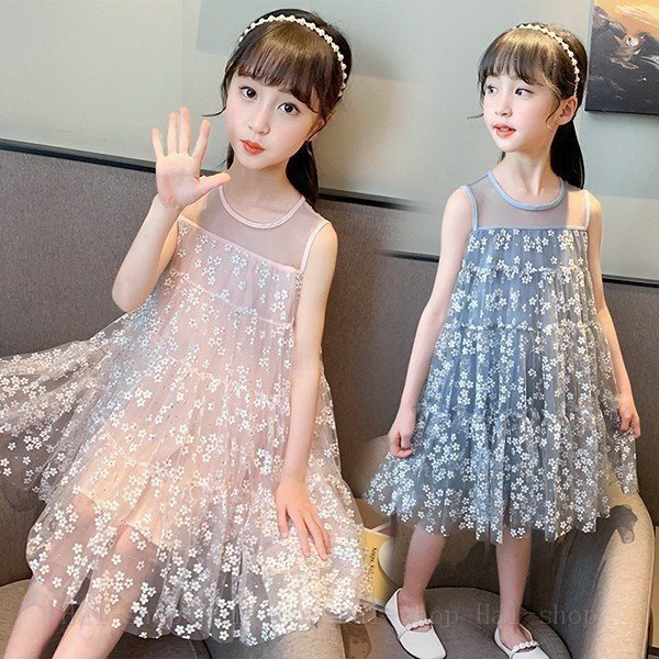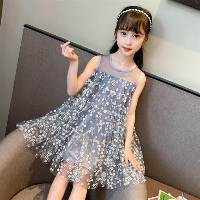キッズ 子供服 ワンピース 女の子 キッズワンピース 花柄ワンピース チュール ノースリーブ チュニック 子供ドレス お姫様 おしゃれ カジュアル 可愛い 新品