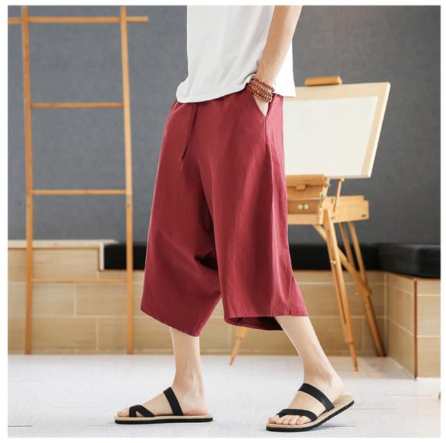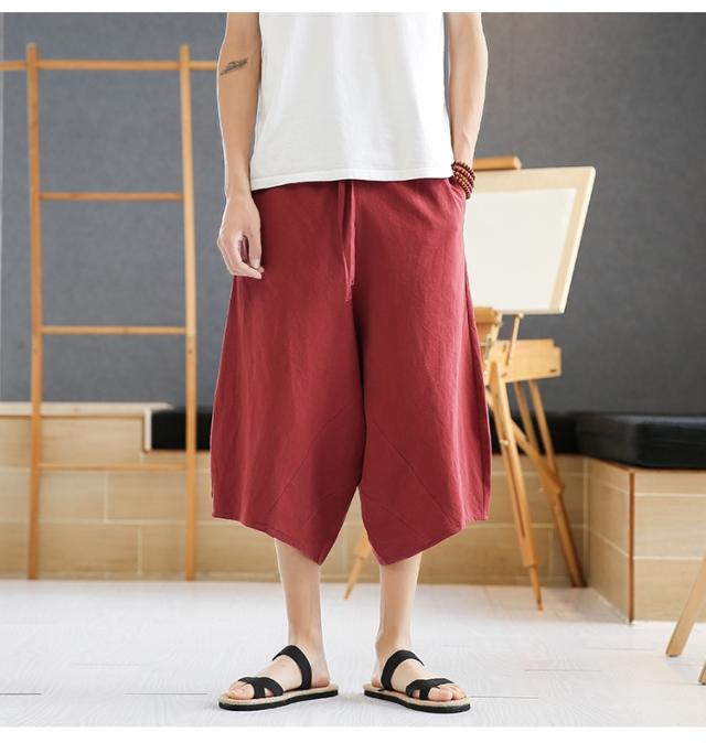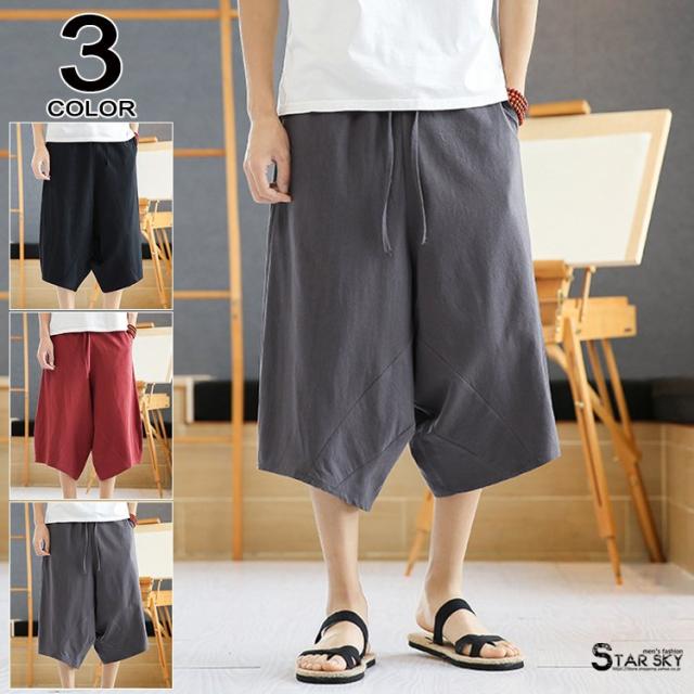 コットンパンツ クロップドパンツ メンズ 麻パンツ バギーパンツ ワイドパンツ 7分丈パンツ 夏物 ズボン カジュアル 40代 50代