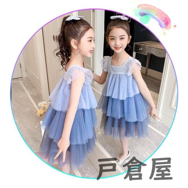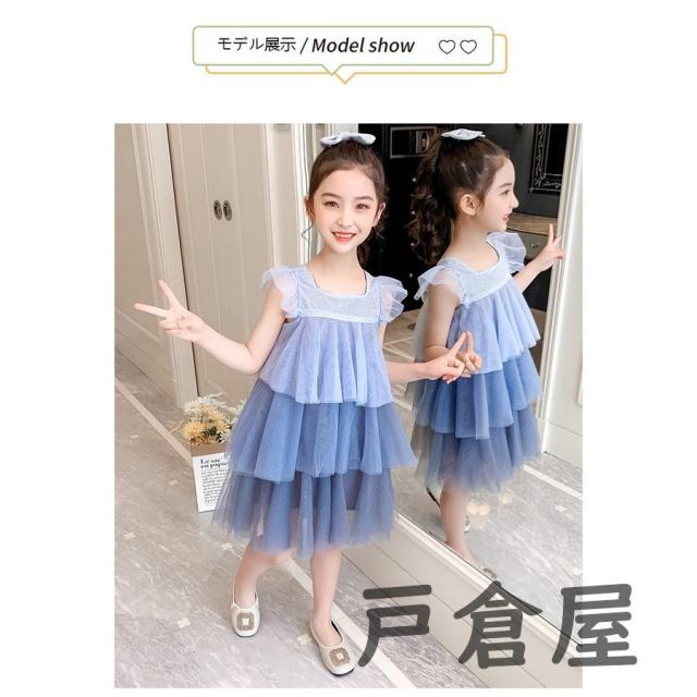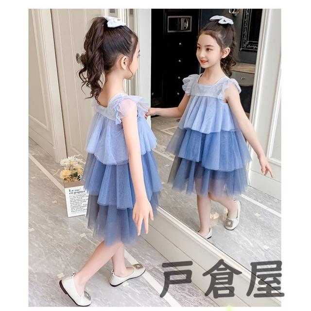 子供服 ワンピース 女の子 夏服 レース韓国半袖 女の子カステラスカート キッズ 子ども服 ジュニア ドレス 柔らかい可愛い 戸倉屋 お姫様 七五三 誕生日 新品