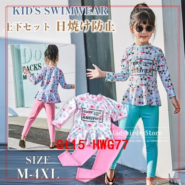 水着子供女の子水着キッズセパレートスイムウェアおしゃれ長袖上下セット長ズボン女子フリルスイミングガールズ90/100/110/130/140cm