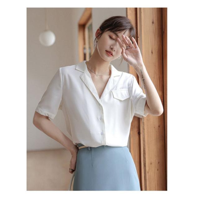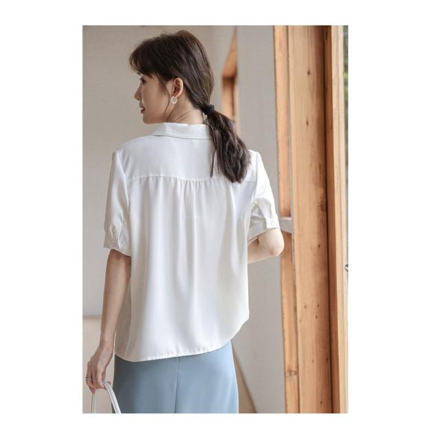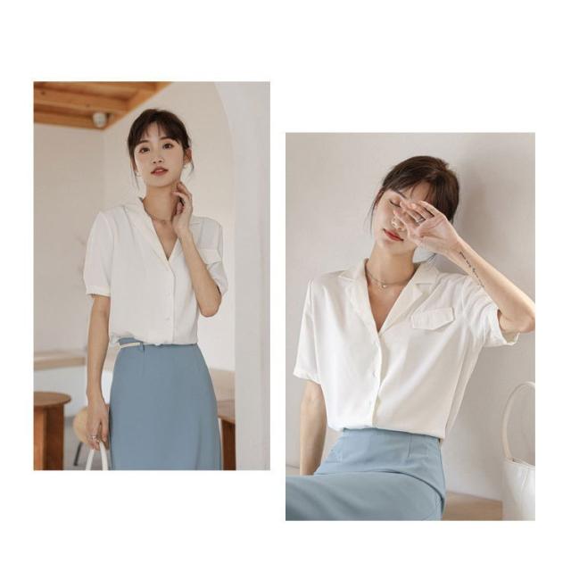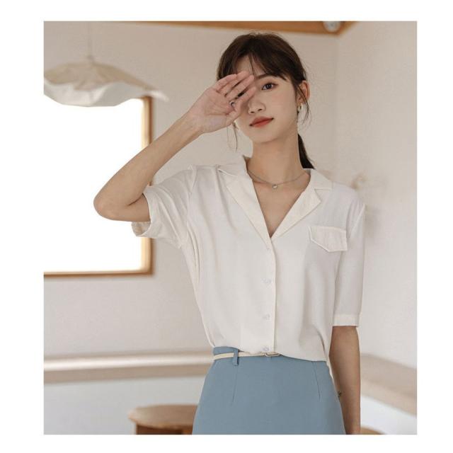 ブラウス レディース 40代 春夏 新作 韓国風 Vネック ブラウス 白 シフォン シャツ 半袖 トップス ブラウス 大人 通勤 ゆったり おしゃれ 30代 50代