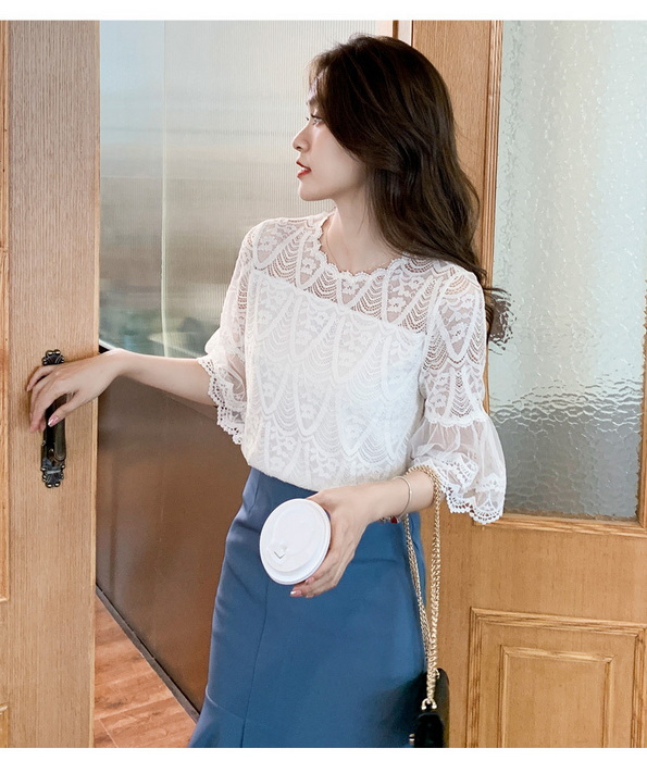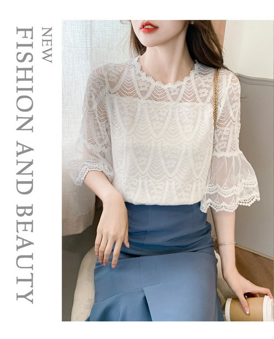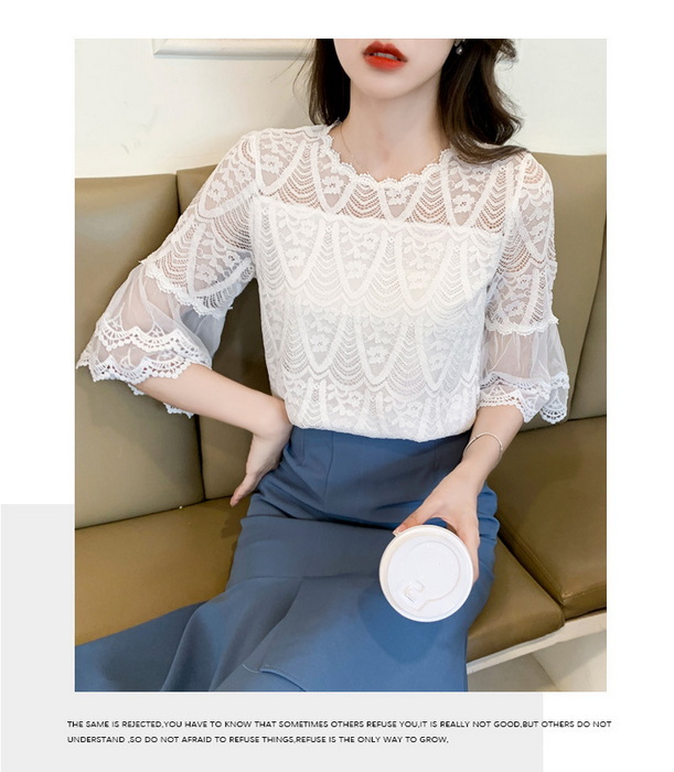 ブラウス レディース 40代 春夏新作 オシャレブラウス 白ブラウス レース花刺繍ブラウス ベルスリーブ 五分袖トップス 大人通勤 OL ゆったりtシャツ 30代50代
