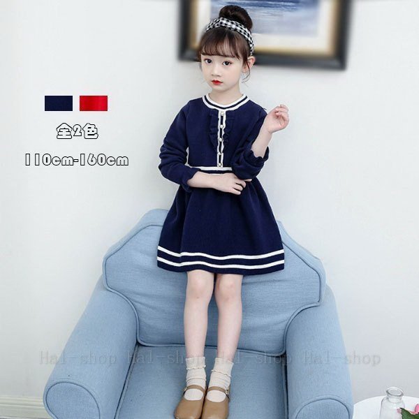 ワンピース 春服 女の子 ニットワンピ レッド カワイイ スウィート キッズ ワンピ 長袖 プリンセス 姉妹 お祝い 結婚式 春着 秋着 普段着 110-160