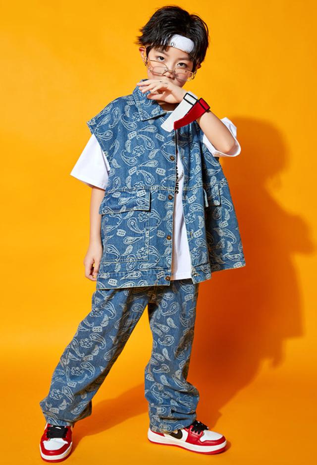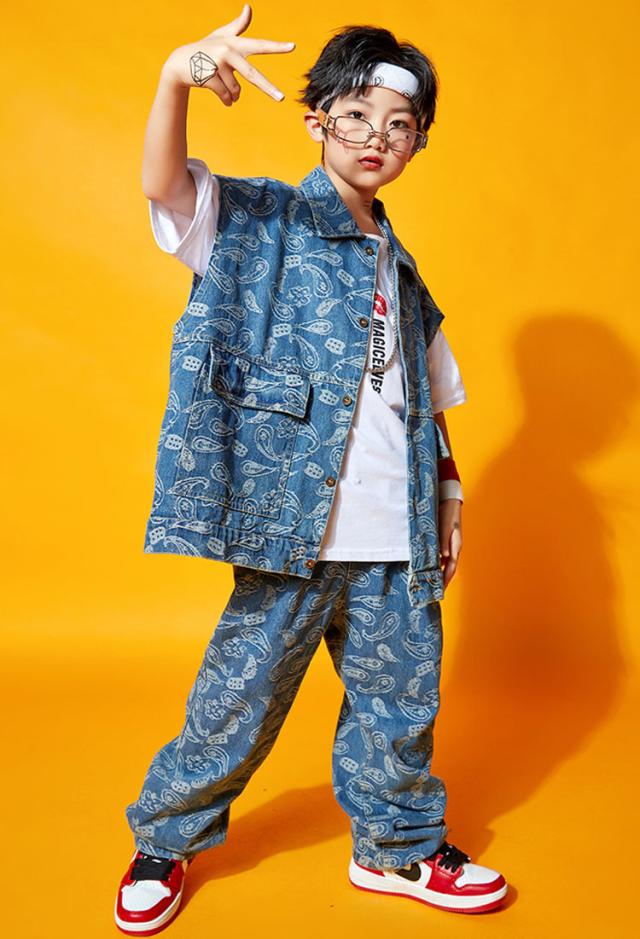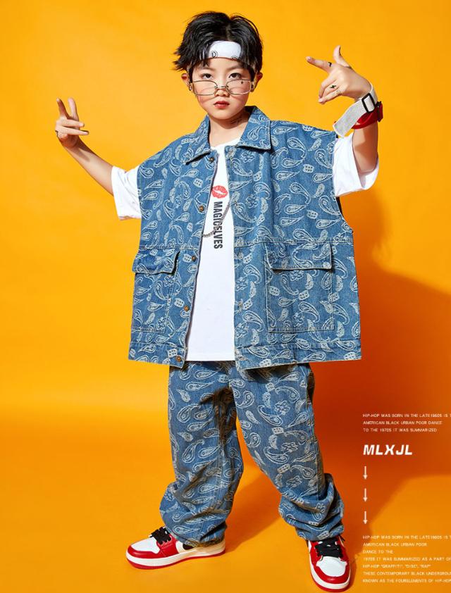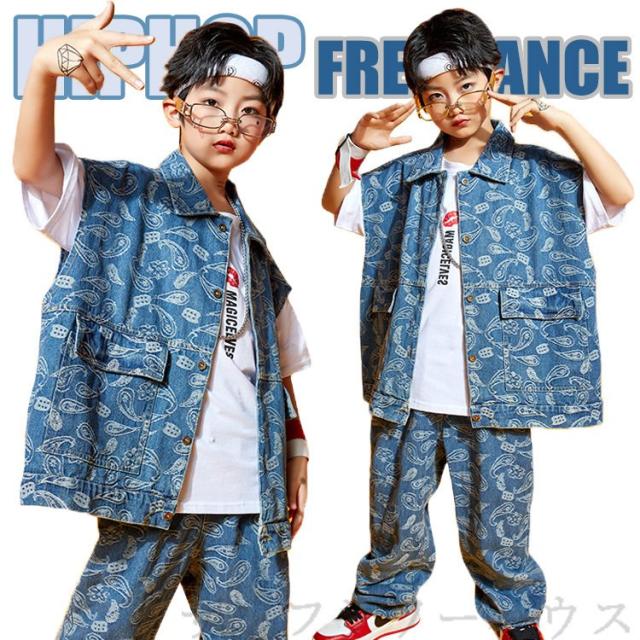 キッズダンス衣装 セットアップ デニム ベスト デニムパンツ チアダンス 男女兼用 ジャズダンス ガールズ ヒップホップ 韓国 かっこいい 練習着 演出服 発表会