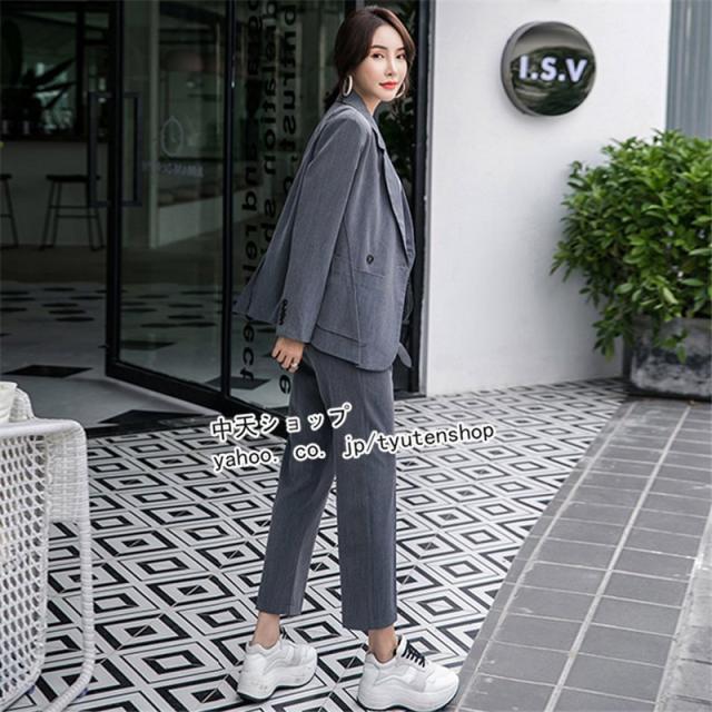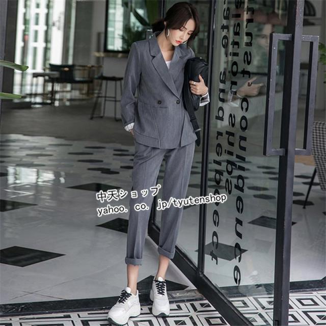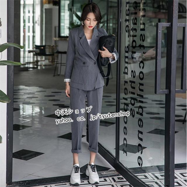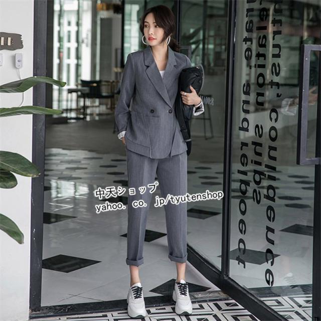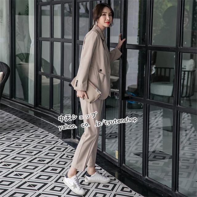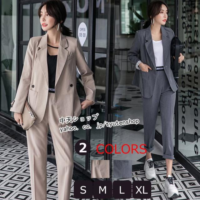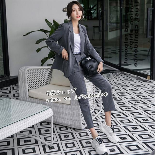 パンツスーツ スーツレディース 2点セット 長袖ジャケット+ロングパンツ 九分パンツ テーラード 秋服 ビジネススーツ 女性 着痩せ 通勤 入学式 卒業式 大人