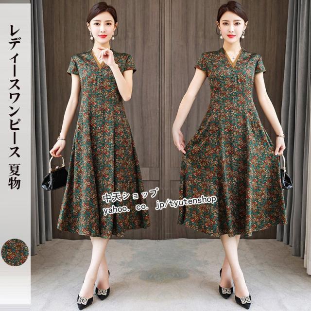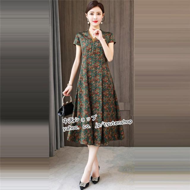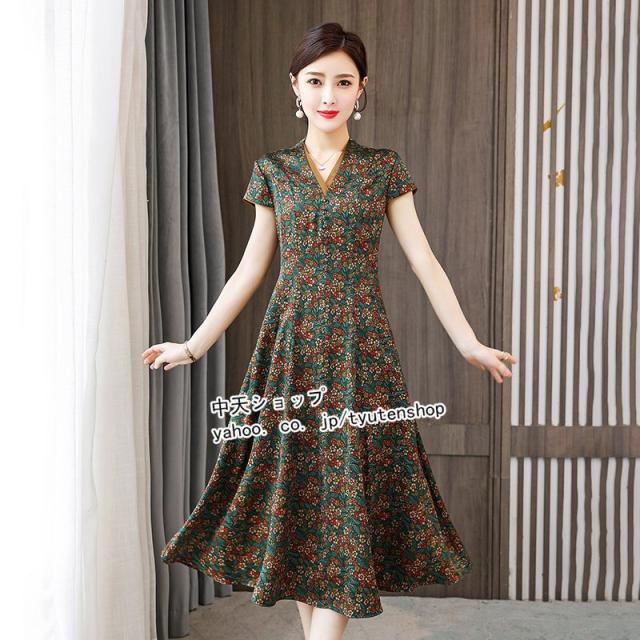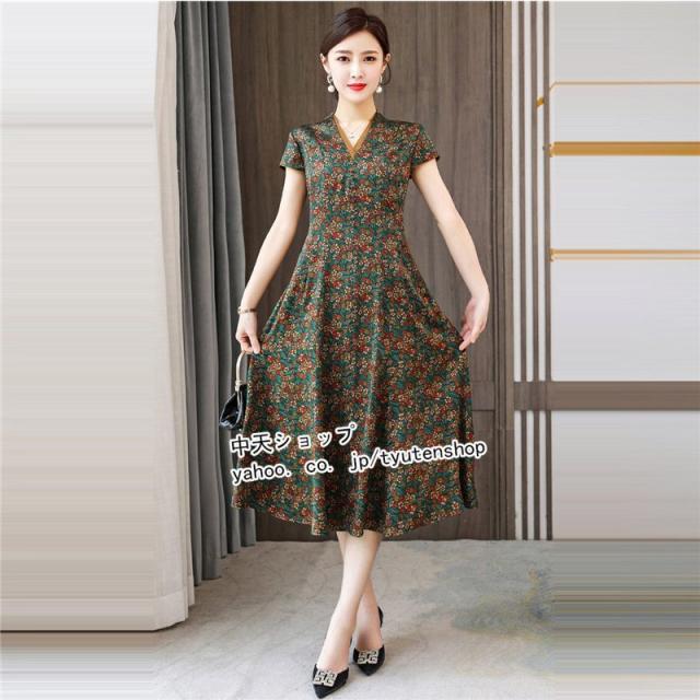 ワンピースレディース?ミモレワンピース 40代 50代 夏 半袖 ママワンピース 大きいサイズ お呼ばれ 気質 着痩せ 結婚式 披露宴 パーティー エレガント 大人