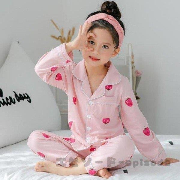 キッズ パジャマ 綿100% 長袖 女の子 ルームウェア 90cm 100cm 110cm 120cm 130cm 140cm 150cm 前開き 春 秋 子供 おしゃれ ピンク