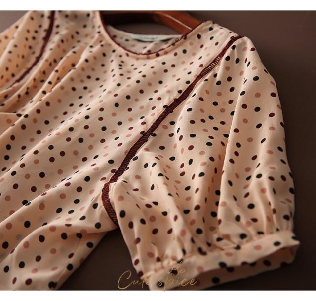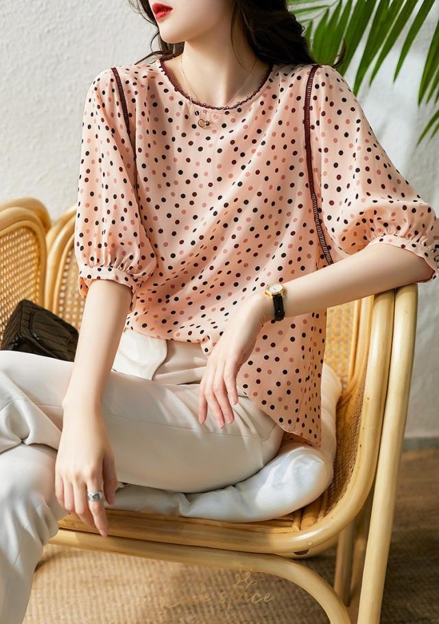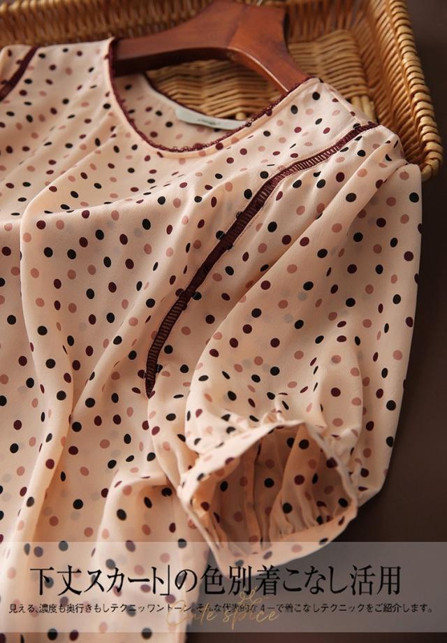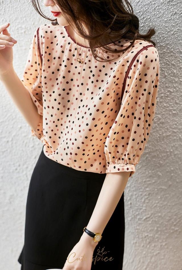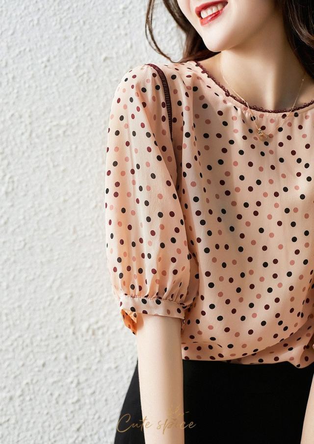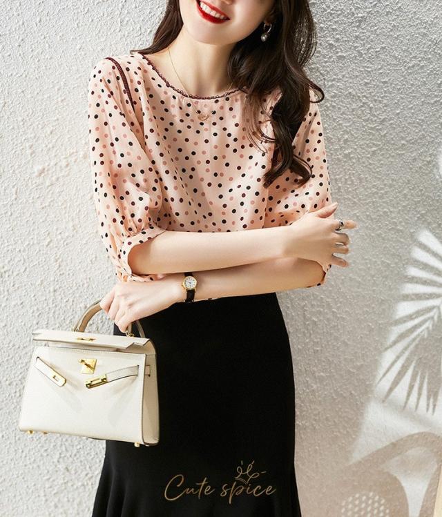 ブラウス レディース 40代 春夏新作 オシャレブラウス レションシャツ 半袖トップス ドット柄 パフスリーブブラウス 大人上品 通勤OL ゆったり Tシャツ30代