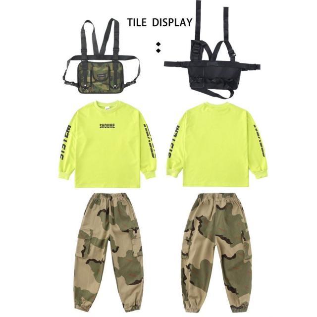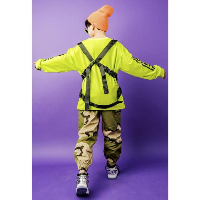 キッズダンス衣装 ヒップホップ セットアップ HIPHOP 長袖 シャツ 迷彩 パンツ ズボン 男の子 女の子 子供服 ジャズダンス ステージ衣装 練習着