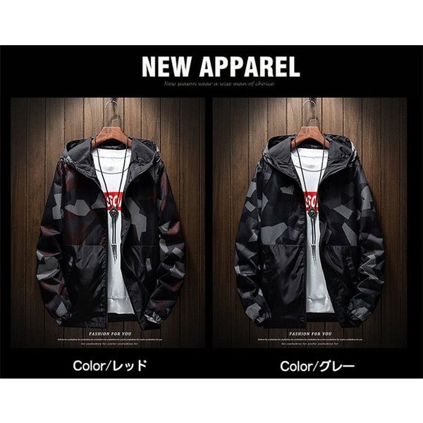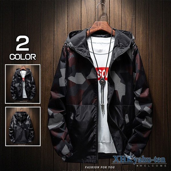 ウインドブレーカー メンズ ジャケット マウンテンパーカー メッシュ 切り替え ブルゾン フルジップ 迷彩柄 アウトドア