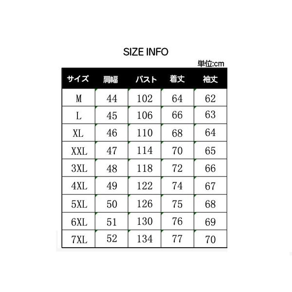 | サイズ | M L XL 2XL 3XL 4XL 5XL 6XL 7XL |