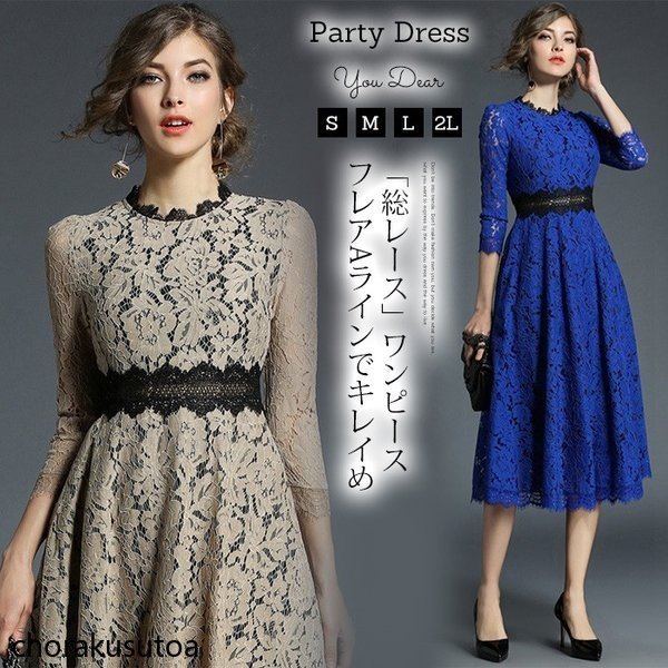 ワンピース 結婚式 パーティードレス 結婚式 ワンピース ドレス お呼ばれ 総レースワンピース レディース きれいめ 二次会 披露宴 30代 40代 ワンピース