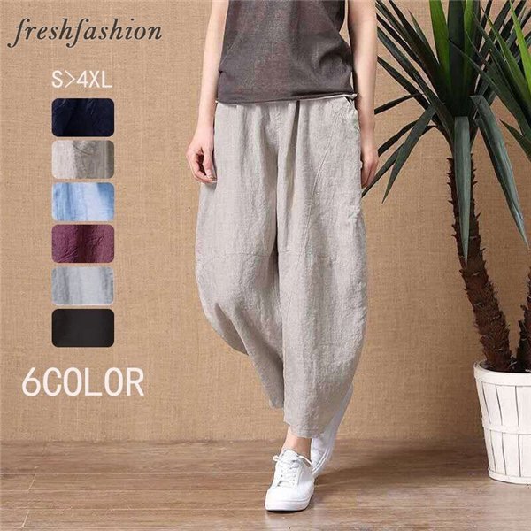 ワイドパンツ ガウチョパンツ レディース 夏 ゆったり ボトムス 無地 夏物 ウエストゴム 大きいサイズ 体型カバー 薄手 40代 50代 春 夏
