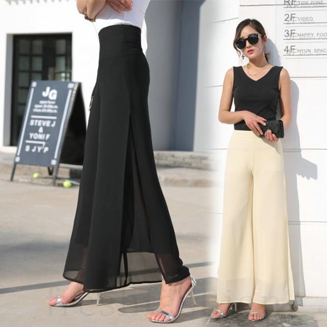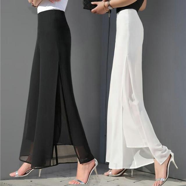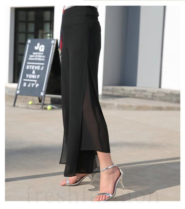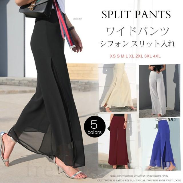 新作 ワイドパンツ ガウチョパンツ 夏 ワイドパンツ レディース シフォン 大きいサイズ ガウチョ スカーチョ ロング スリット入れ シフォン ガウチョパンツ