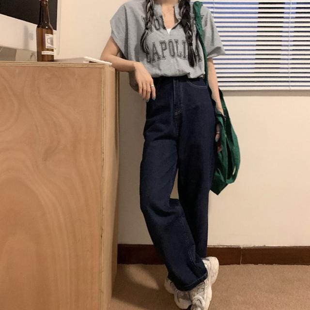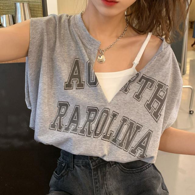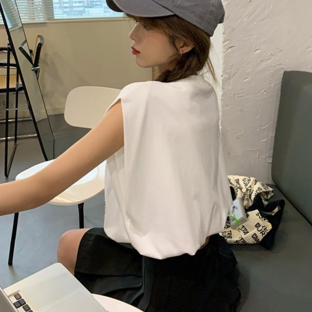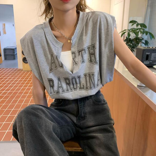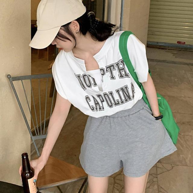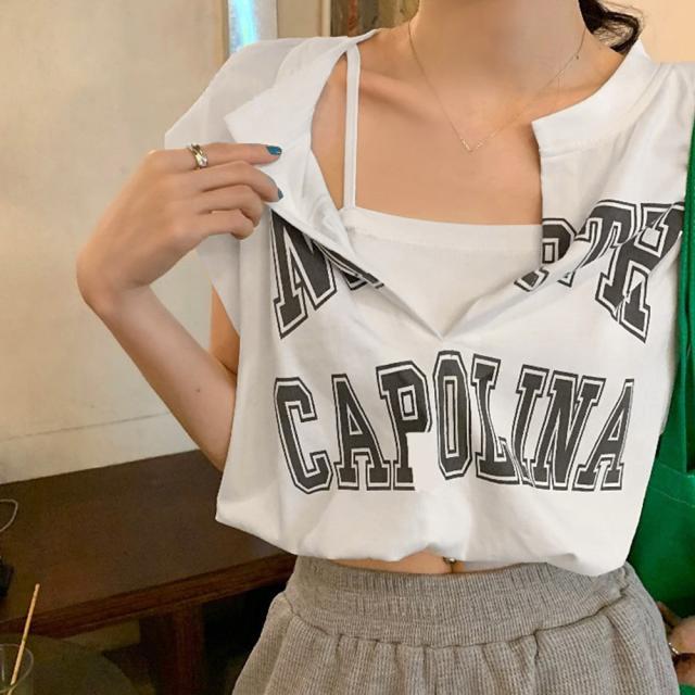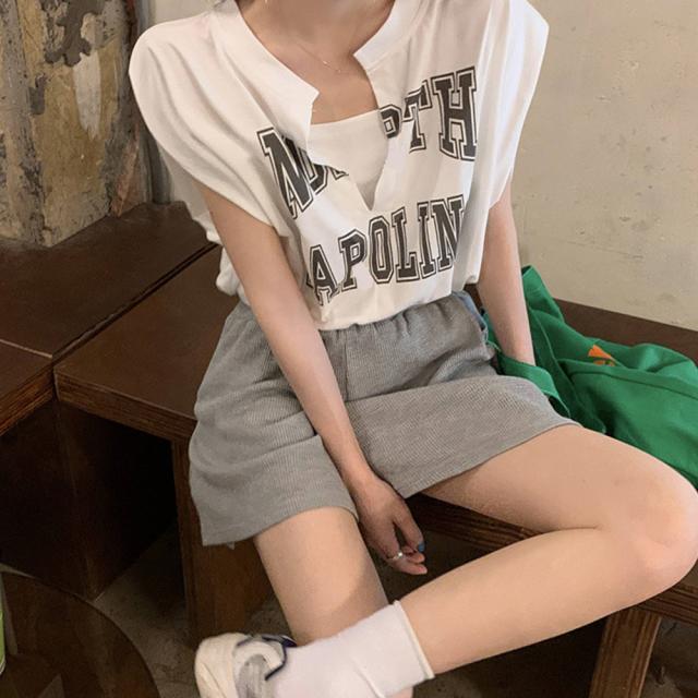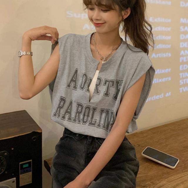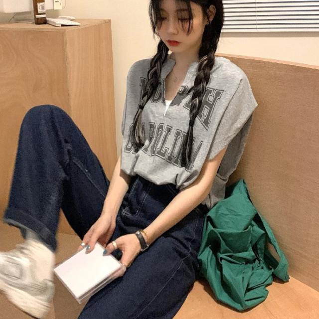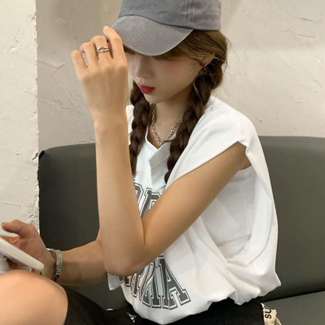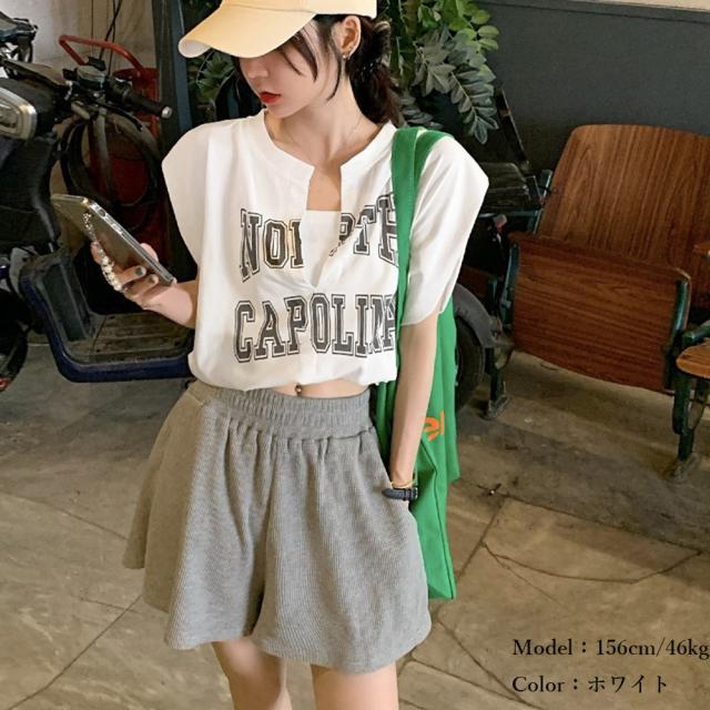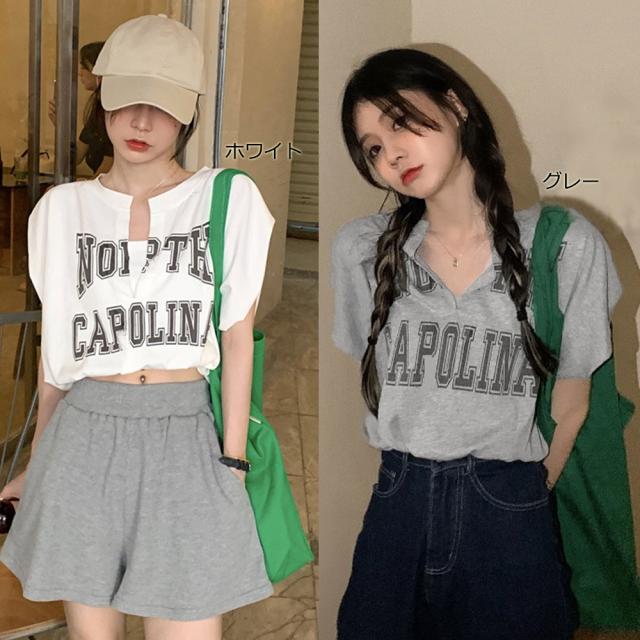 ロゴtシャツ Vネックショートトップス