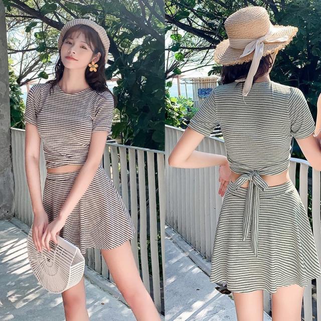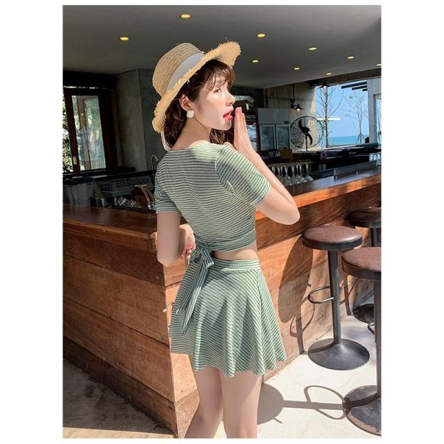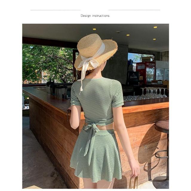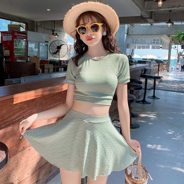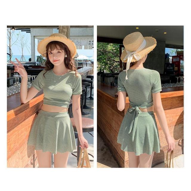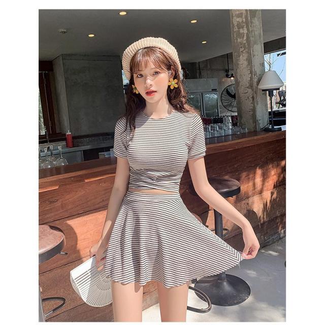 ファッション体型カバー 水着 レディース Tシャツ 水着 中学生 高校生 10代 スポーティー 体型カバー 2点セット 学生 少女 小胸にもぴったり 夏 韓国