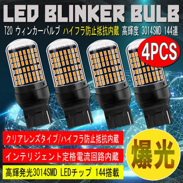 T20 LED ウィンカーバルブ 4個セット 3014SMD 144連 爆光 ハイフラ防止抵抗内蔵