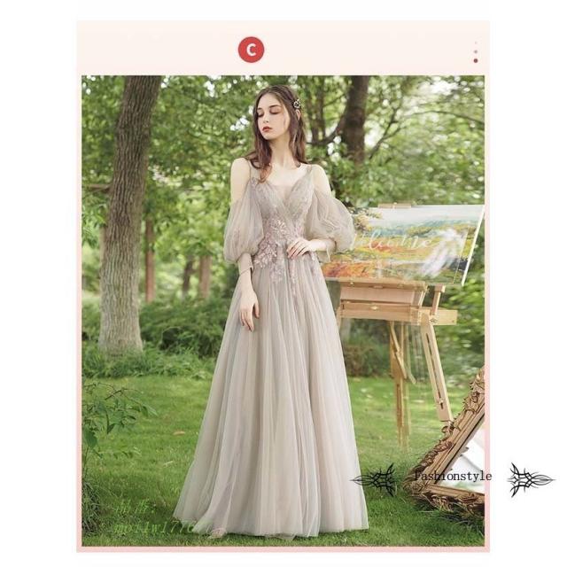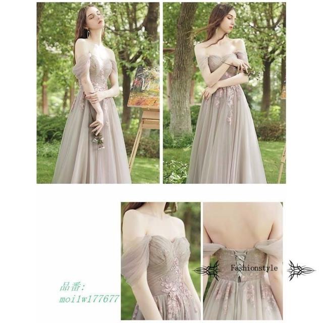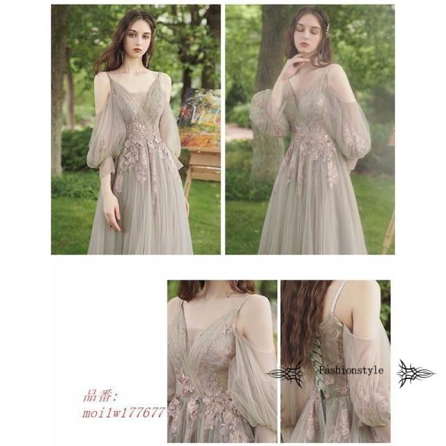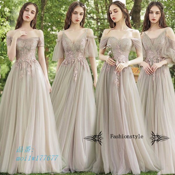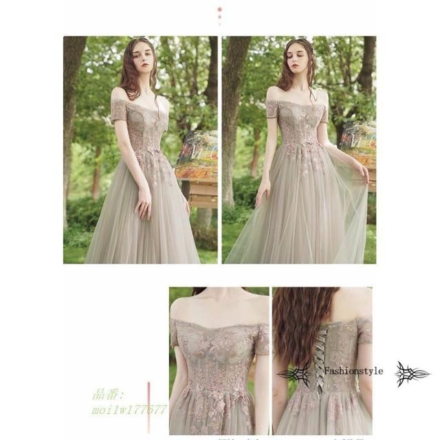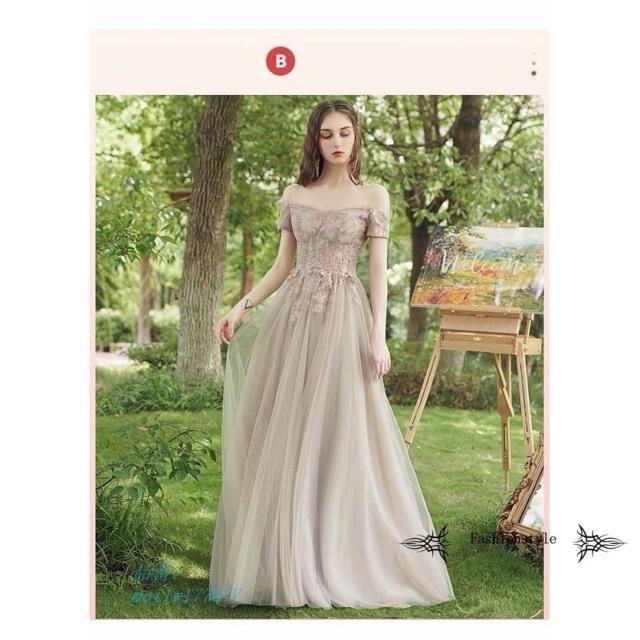 ブライズメイド ドレス ロング丈 結婚式 体型カバーフリル オフショルダー花嫁