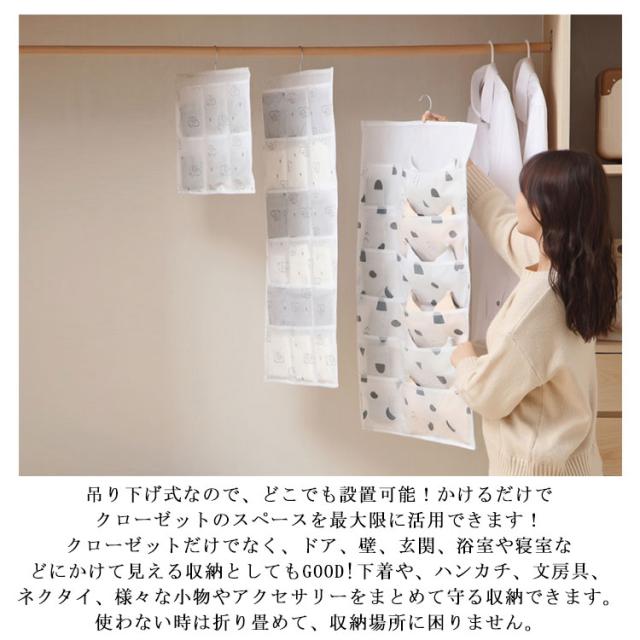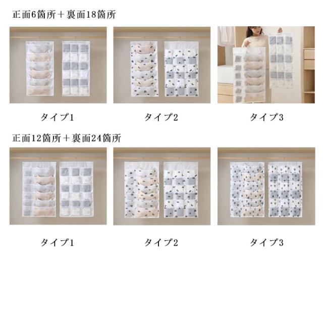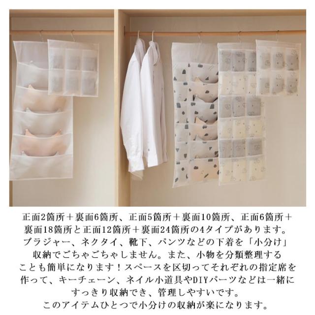 | 【大容量両面収納】正面2箇所+裏面6箇所、正面5箇所+裏面10箇所、正面6箇所+裏面18箇所と正面12箇所+裏面24箇所の4タイプがあります。ブラジャー、ネクタイ、靴下、パンツなどの下着を「小分け」収納でごちゃごちゃしません。また、小物を分類整理することも簡単になります!スペースを区切ってそれぞれの指定席を作って、キーチェーン、ネイル小道具やDIYパーツなどは一緒にすっきり収納でき、管理しやすいです。このアイテムひとつで小分けの収納が楽になります。 【便利な吊り下げ式・省スペース】吊り下げ式なので、どこでも設置可能!かけるだけでクローゼットのスペースを最大限に活用できます!クローゼットだけでなく、ドア、壁、玄関、浴室や寝室などにかけて見える収納としてもGOOD!下着や、ハンカチ、文房具、ネクタイ、様々な小物やアクセサリーをまとめて守る収納できます。使わない時は折り畳めて、収納場所に困りません。 【安全安心な素材】本体は高品質なPEVA素材で作られ、耐久性にも優れています。透明デザインで、中身がパッと分かります。使いたい時に一目で分かるのでサッと取り出せて便利です。 【多機能収納】衣類として収納すると、ブラジャー、パンツ、下着、靴下、ハンカチ、ネクタイ、スカーフ、帽子、赤ちゃんの服などに最適です。文房具の収納としては、ファイル分類、封筒、ペン、ペンナイフ、カードなどに最適です。 また、リモコン、キーチェーン、ヘアクリップ、シュシュ、ネイル小道具やDIYパーツなどの小物も収納できます。 | |