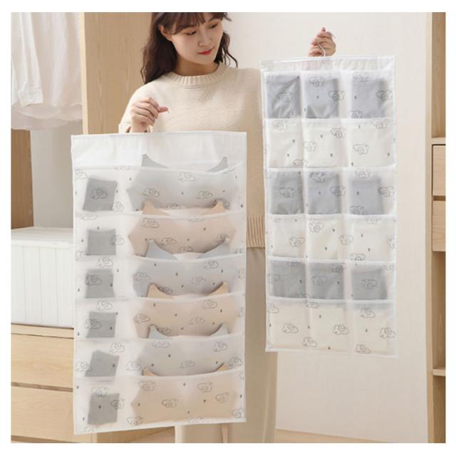 ハンガー式 下着収納 壁掛け 両面サイド 36ポケット 吊り下げ収納 仕切り クローゼット 靴下 ブラジャー ショーツ メッシュ 収納ポケット 省スペース スリム
