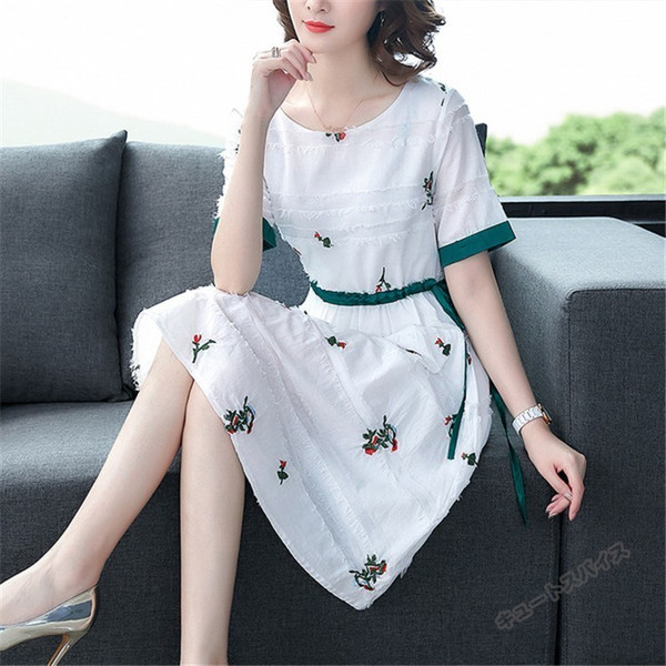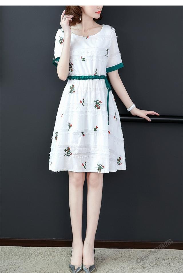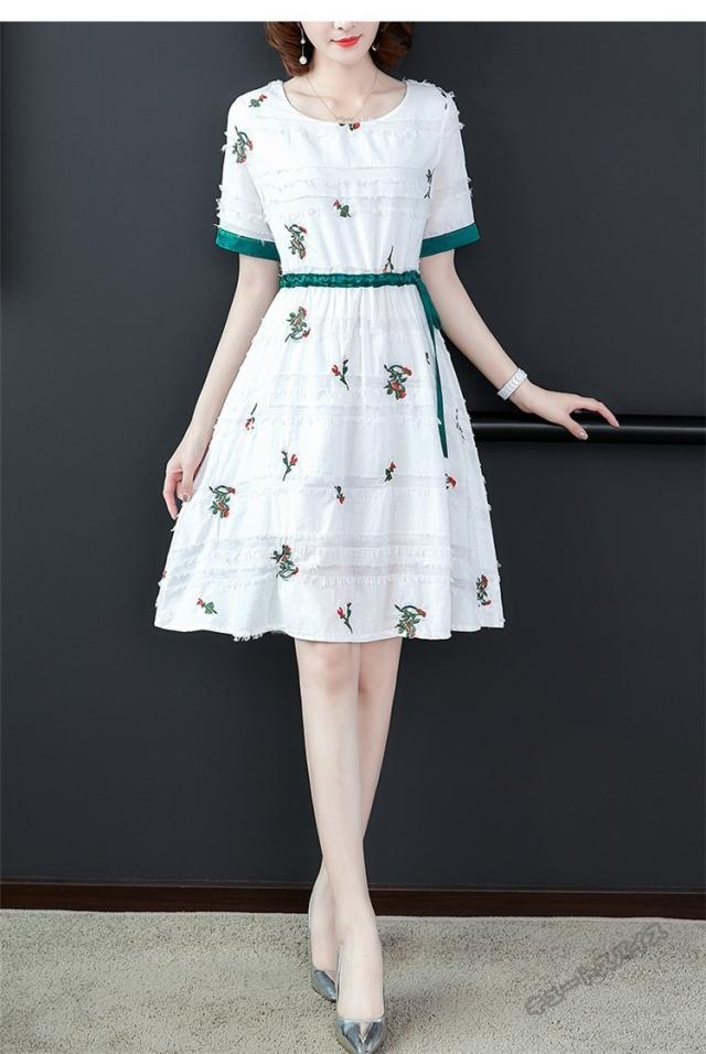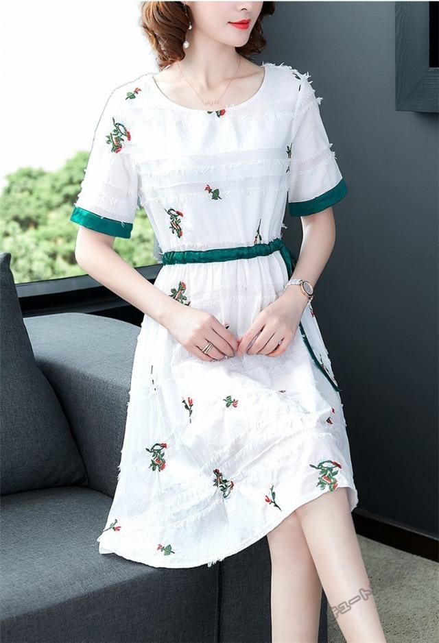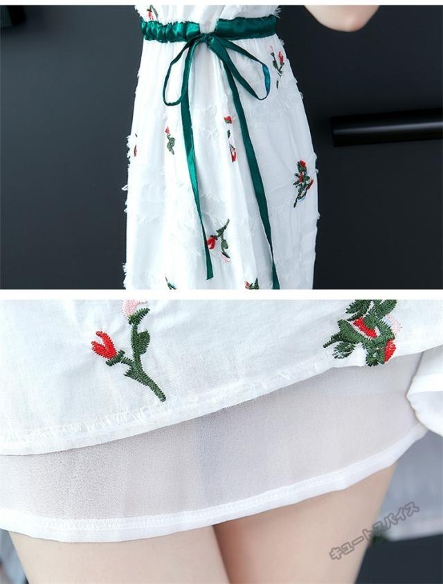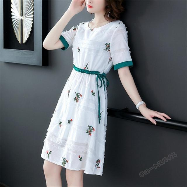 ワンピース レディース 春 夏 膝丈ワンピース ロング 膝下 ゆったり 綿 コットン 刺繍 花柄 ノースリーブ ソフト