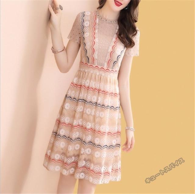 ワンピース レディース 夏 40代 キレイめ 半袖 膝丈 レース袖 ワンピ 着痩せ 体型カバー 春 夏 大人 30代 OL オシャレ 上品