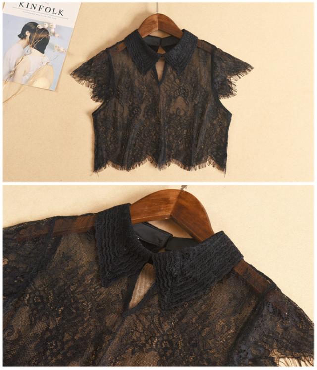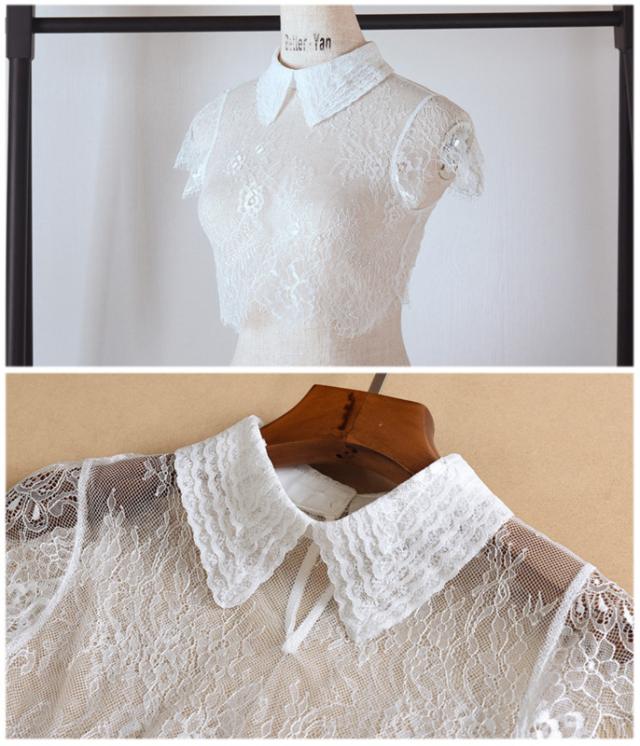 付け襟 シャツ衿 シャツ襟 フェイクシャツ つけえり つけ襟 レース 透け感 フラワーレース ファッション小物 レディース 送料無料