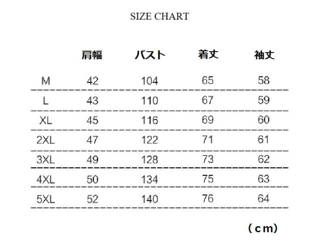 | サイズ | M L XL XXL 3XL 4XL 5XL |