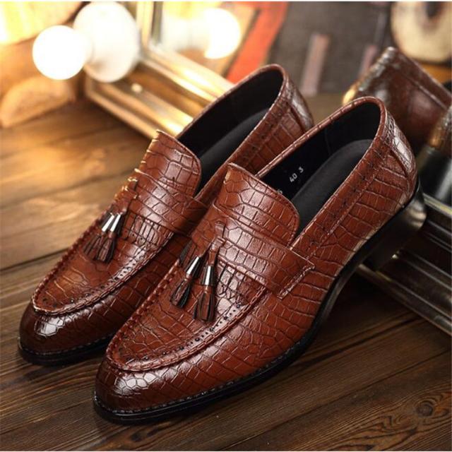 ローファー メンズ ビジネスシューズ スリッポン 牛革 ワニ柄 ドライビング 靴 タッセル 3色