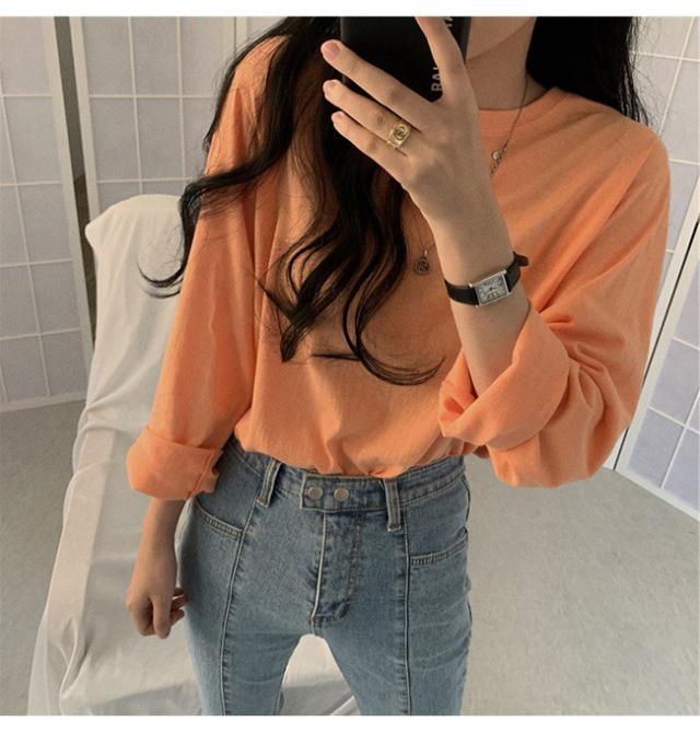 長袖Tシャツ レディース ゆったり Tシャツ 無地 秋 長袖 カットソー クルーネック トップス 春 無地Tシャツ 秋Tシャツ 春Tシャツ