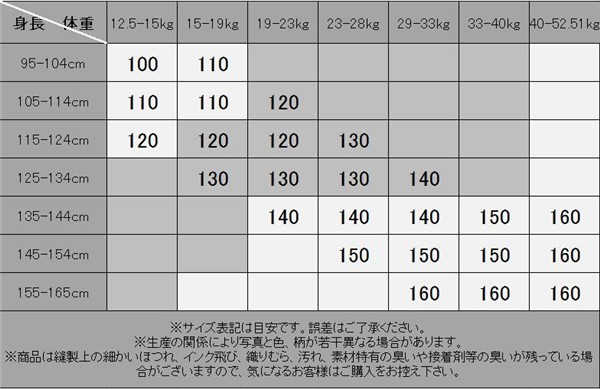 | サイズについての説明 | サイズ:/100/110/120/130/140/150/160 |
