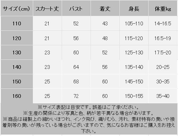 | サイズについての説明 | サイズ:/100/110/120/130/140/150/160 |