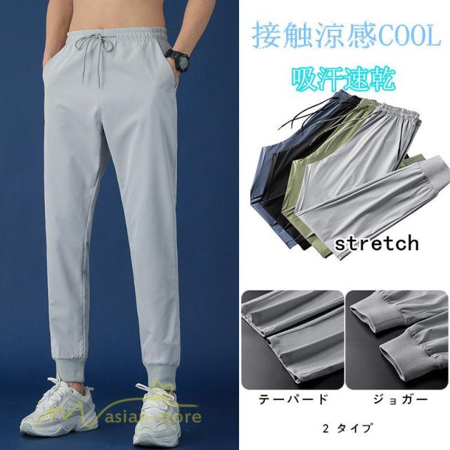 ストレッチパンツ チノパン メンズ パンツ ジョガーパンツ テーパードパンツ 接触冷感 速乾 吸汗速乾 スポーツパンツ 夏 ボトムス ズボン ウエストゴム