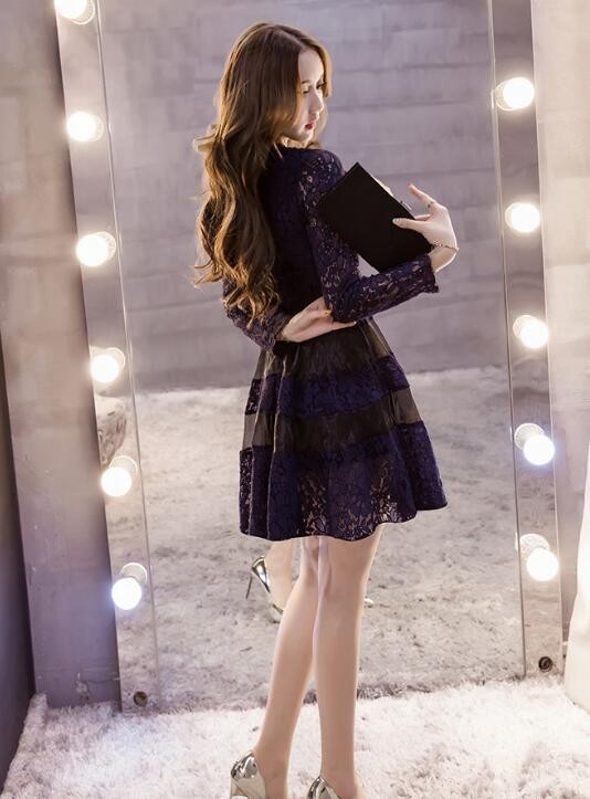 ワンピース レース オシャレ エレガント 上品 パーティードレス ネイビー お呼ばれ ロングワンピース aライン 大人 可愛い フレア