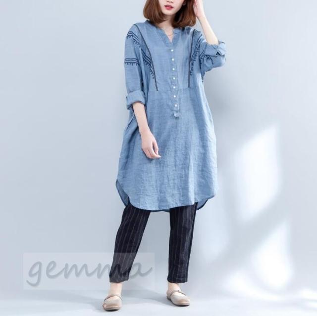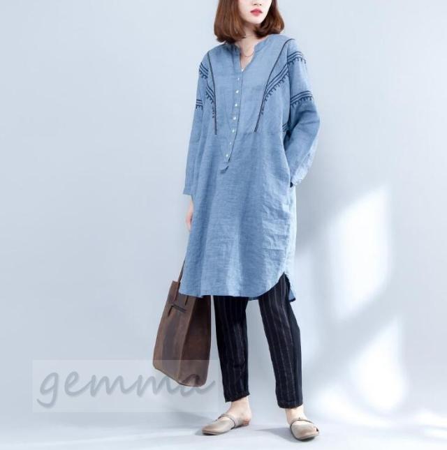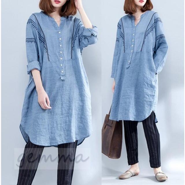 シャツワンピース レディース ワンピース 膝下丈 無地/刺繍 シャツワンピ 体型カバー 夏 20代30代 40代 ポケット付き ファッション