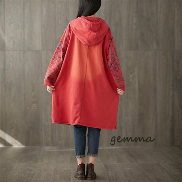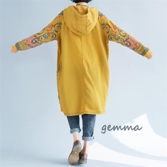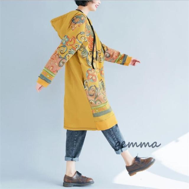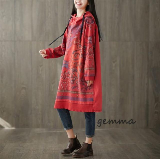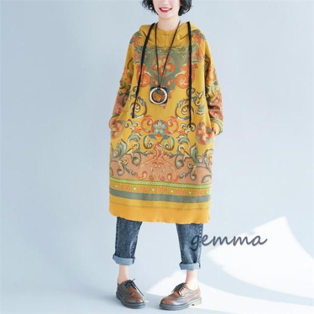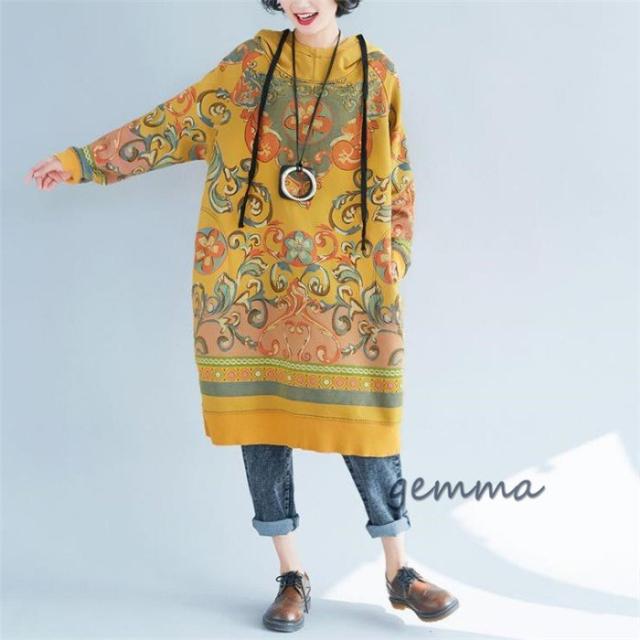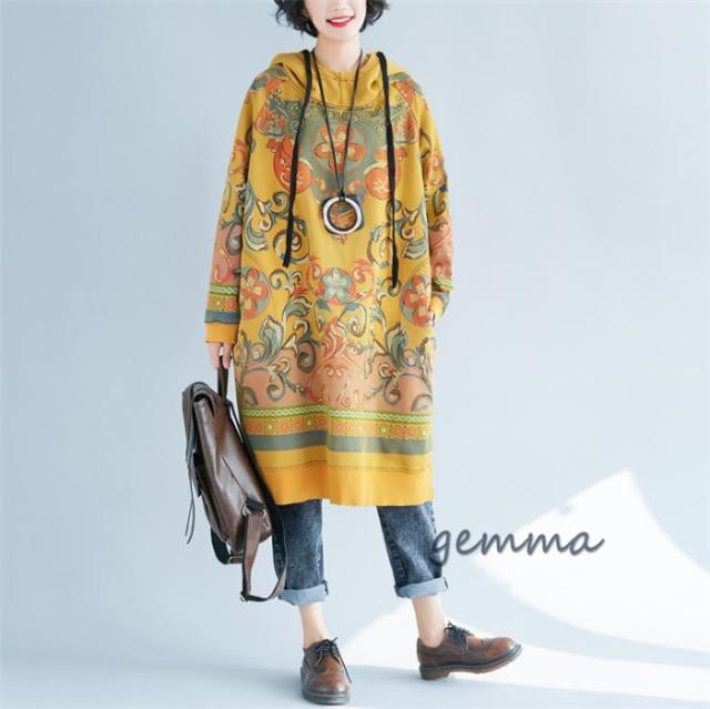 ワンピース パーカー ロング丈ワンピース レディース ゆったり 民族風 復古 文芸 ママワンピース ロングパーカー 春新作 30代40代