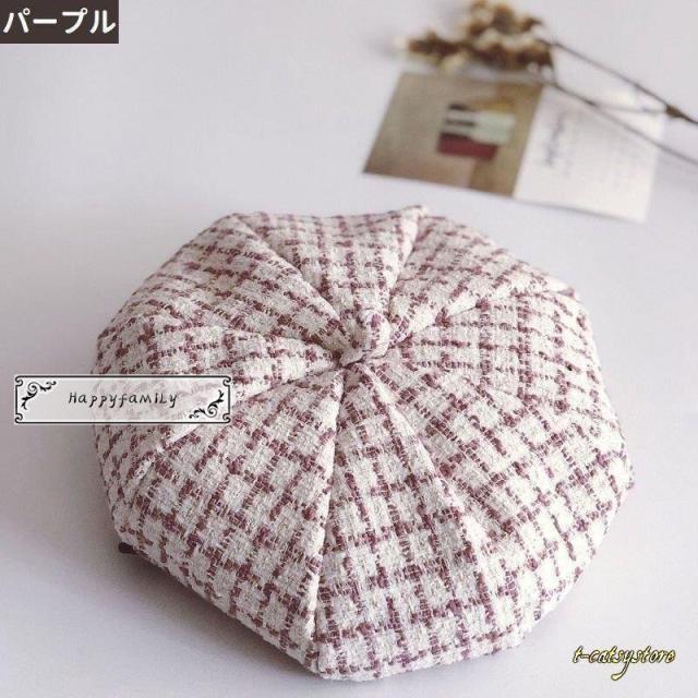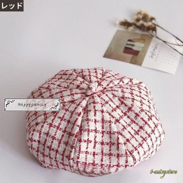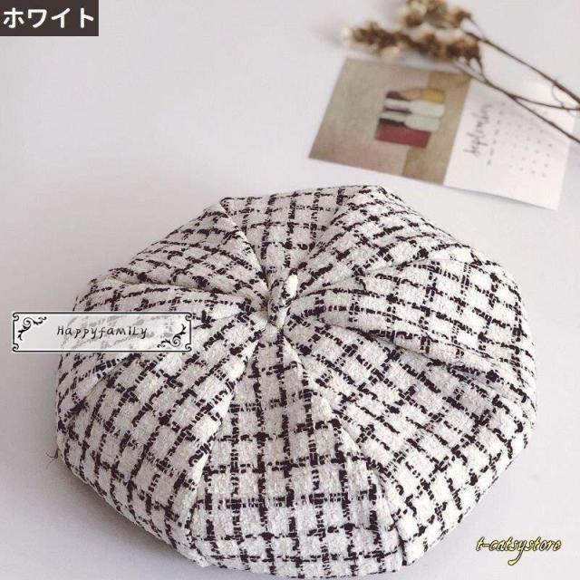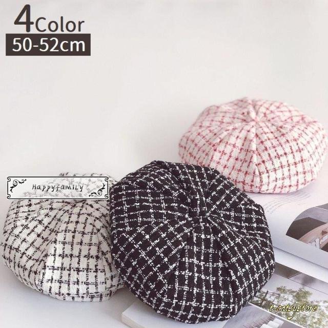 ベレー帽 帽子 キッズ 子供用 女の子 男の子 チェック柄 ツイード調 おしゃれ かわいい カジュアル モノトーン チョボ付き お出かけ 女児 男児