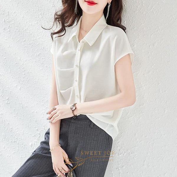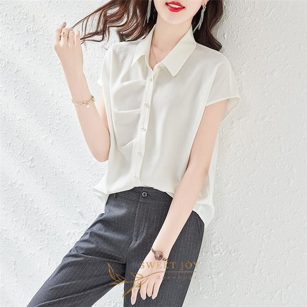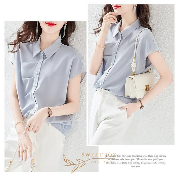 ブラウス レディース 40代 春夏新作 オシャレブラウス 不規則 無地 半袖トップス 上品 大人 通勤OL ゆったり シャツ30代 50代