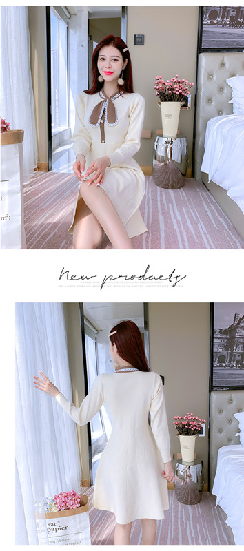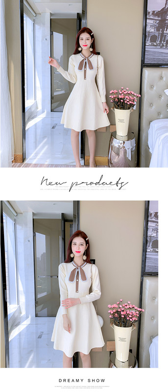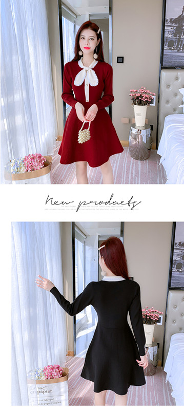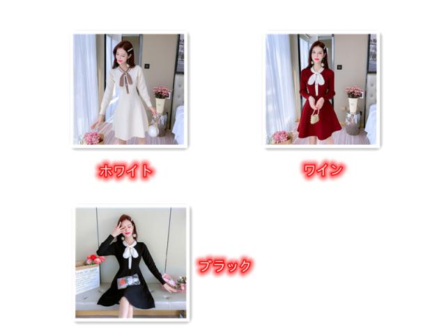 リボン付きニットワンピース お嬢様 ワンピース フレアワンピース ニットワンピ 秋ワンピース 長袖 リボン 可愛い 膝丈 通勤 デート