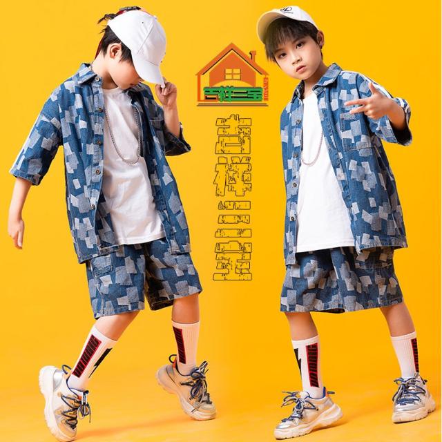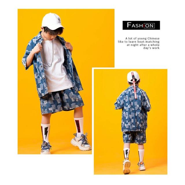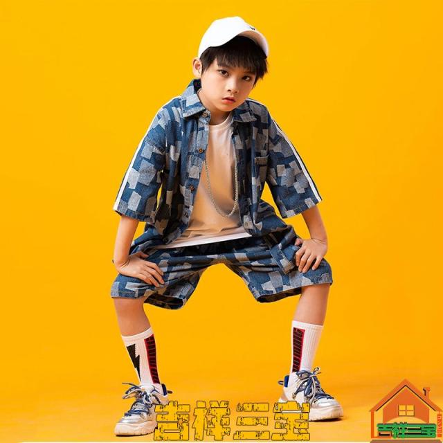キッズダンス ダンス衣装 子供服 シャツ ダンス ヒップホップ hiphop 男の子 夏 半袖 大きいサイズ ゆったり シャツ チェック柄 かっこいい 発表会 ダンス衣装