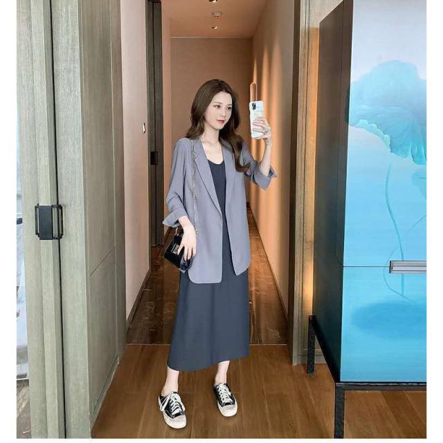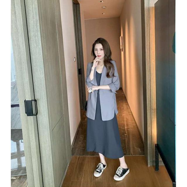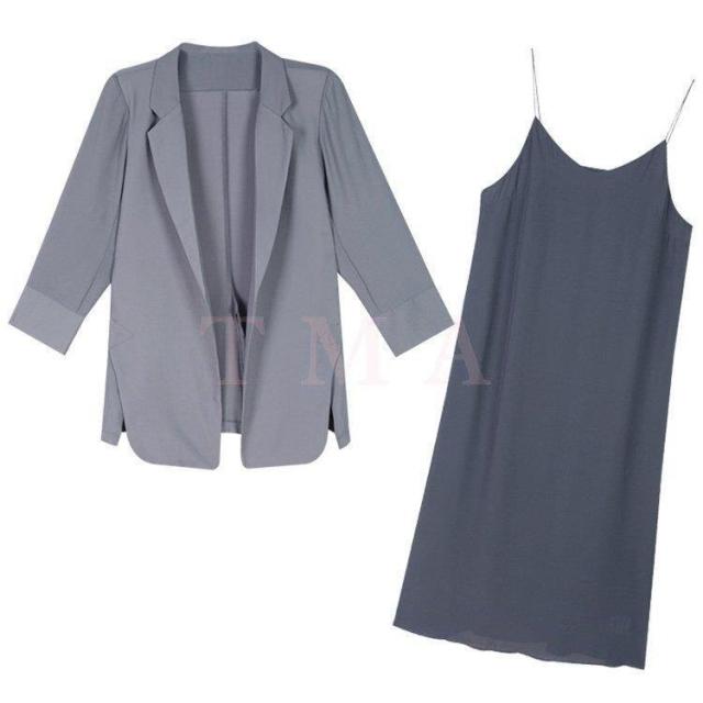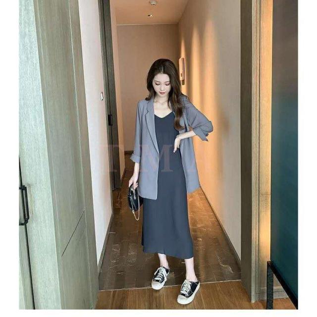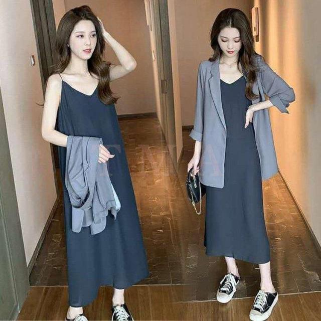 ワンピース2点セット レディース 40代 秋新作 長袖スーツジャケットキャミワンピース ロング丈 ワンピースセットアップ オシャレ韓国風 大人 通勤 40代