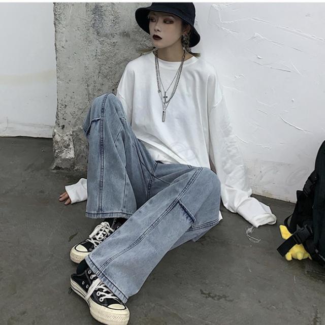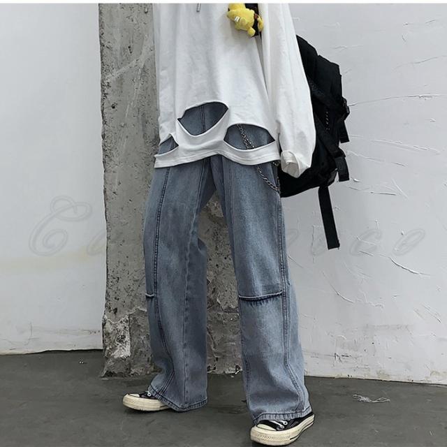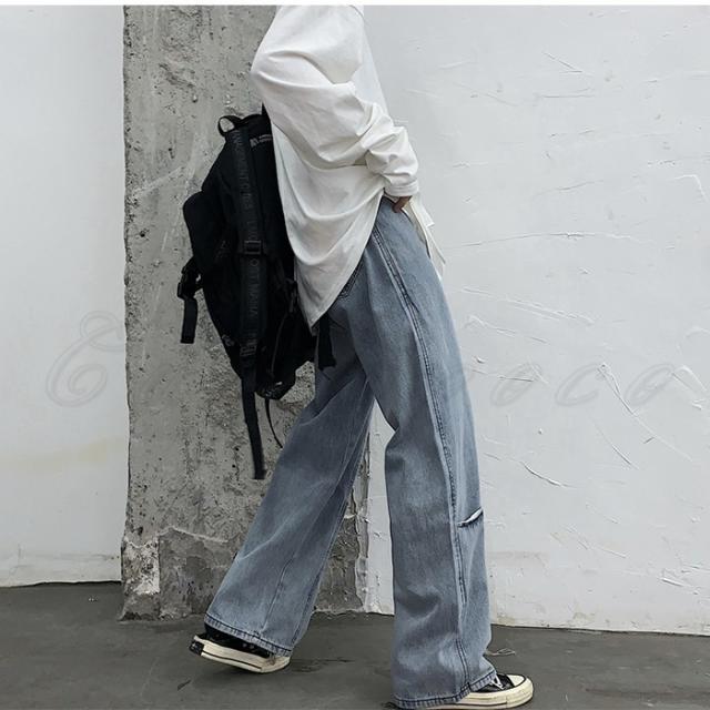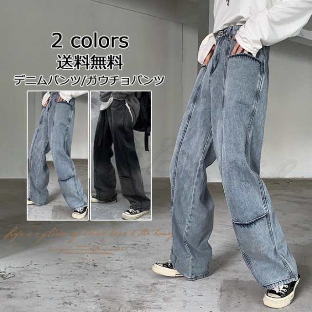 デニムパンツ レディース ガウチョパンツ 無地 ロング丈 ボトムス カジュアル かっこいい ズボン 着痩せ 春秋 きれいめ オシャレ