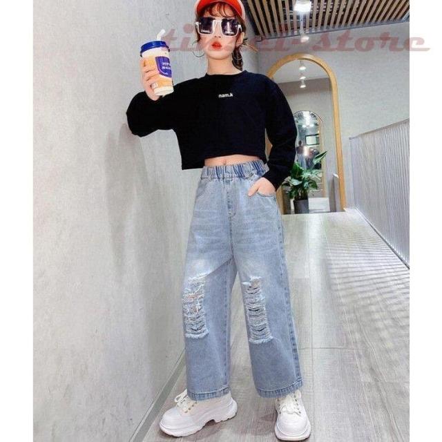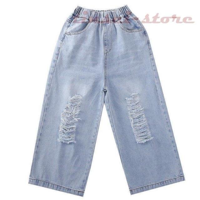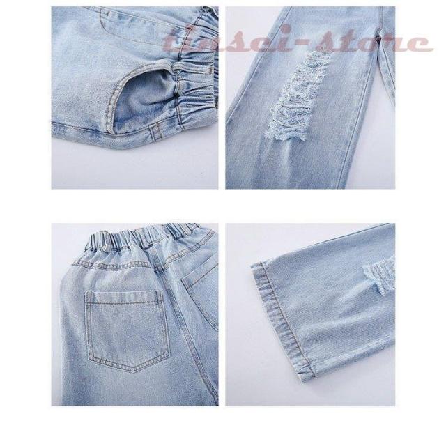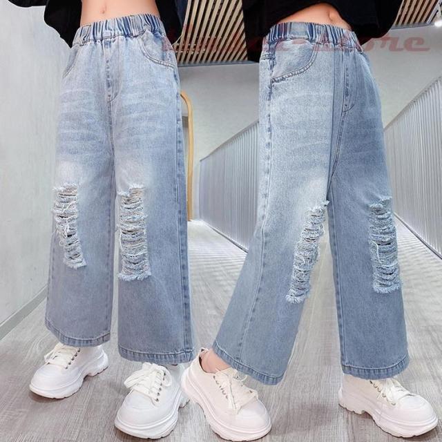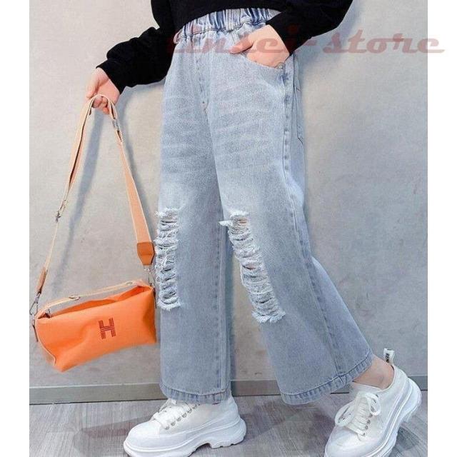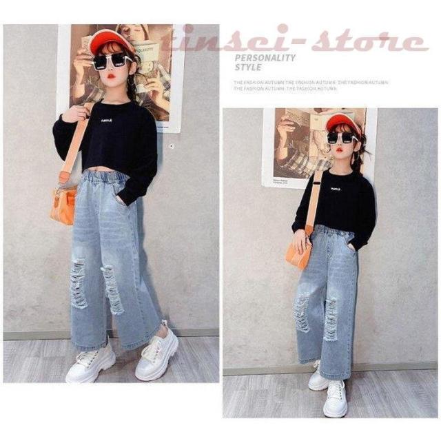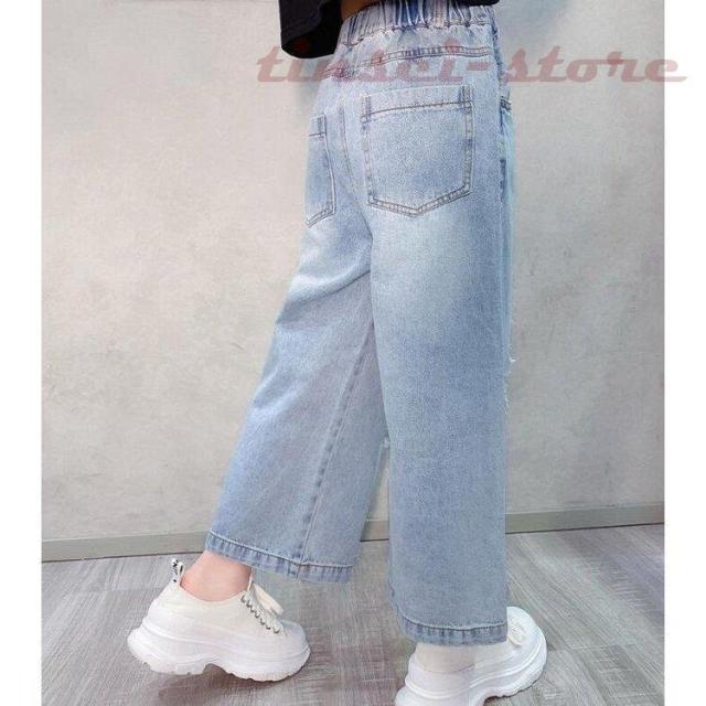 子供服 デニムパンツ ワイドパンツ 春秋 女の子 ジーンズ ジーパン カジュアル ロングパンツ 長ズボン ガウチョパンツ ボトムス キッズ こども ゆったり 可愛い