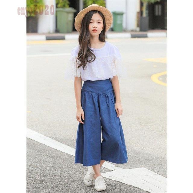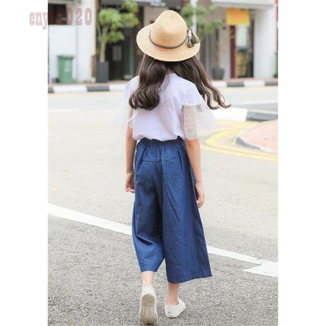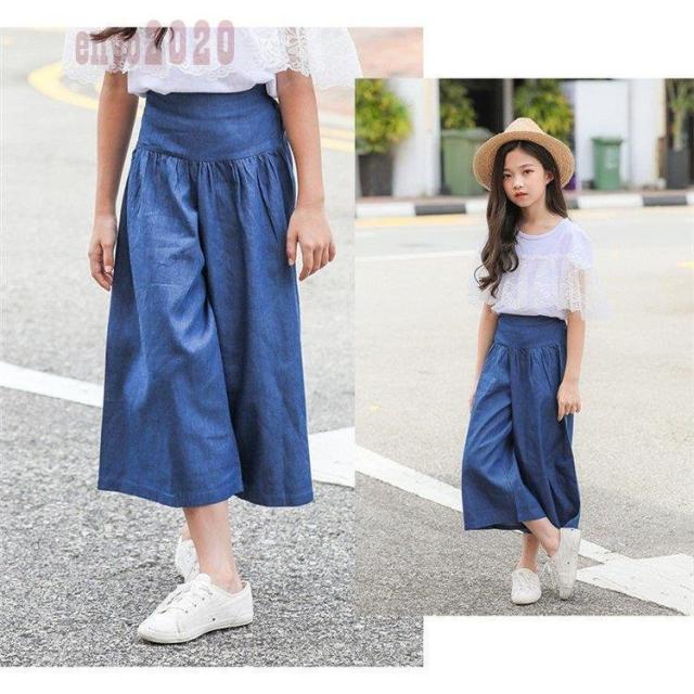 デニムパンツ キッズ 子供服 女の子 ロングパンツ ガウチョパンツ 長ズボン 春服 ボトムス ストレッチパンツ ウェストゴム 伸びる ジーンズ 韓国子供服 おしゃれ