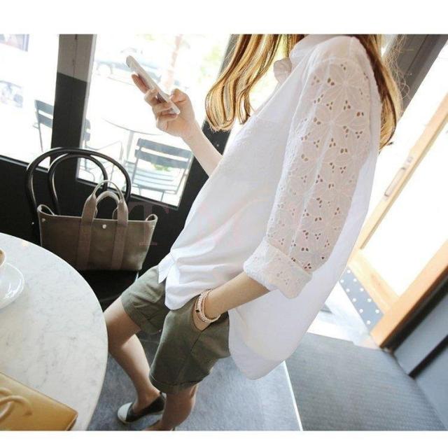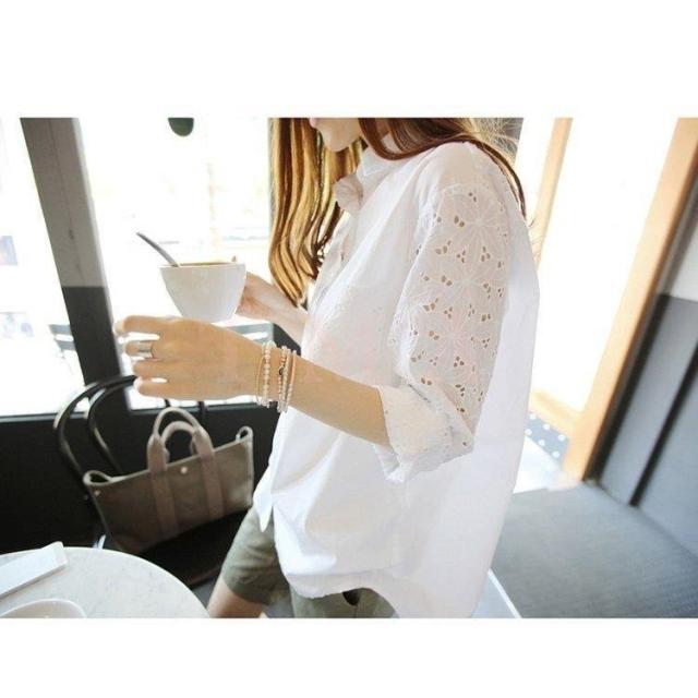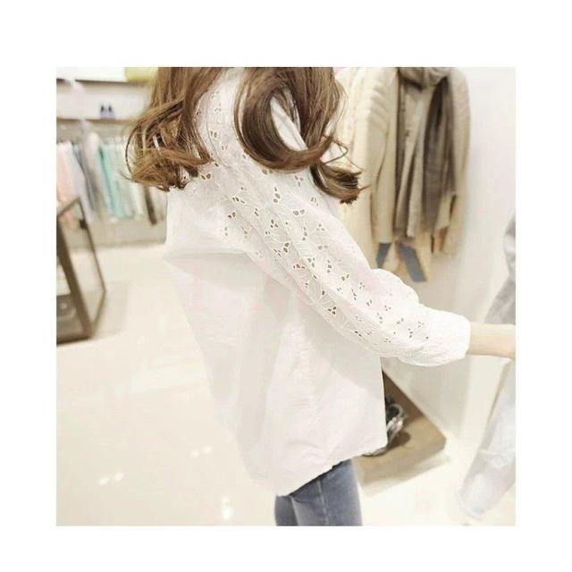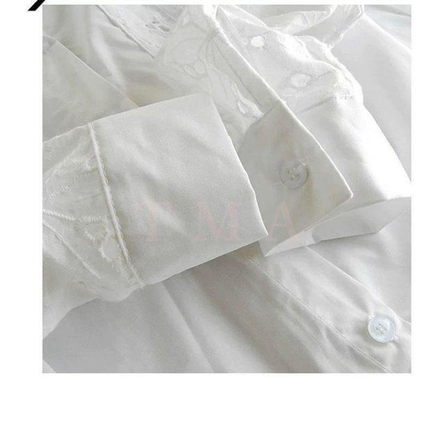ブラウス レディース きれいめ 40代 春夏秋 長袖 レース透かし彫りブラウス 白シャツ オシャレトップス 韓国風 大人 上品シャツ 通勤 30代 50代