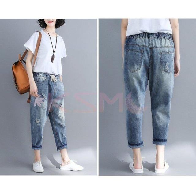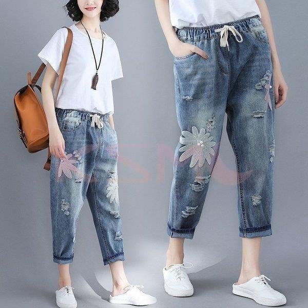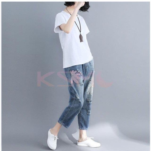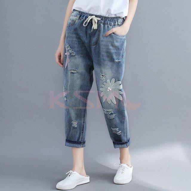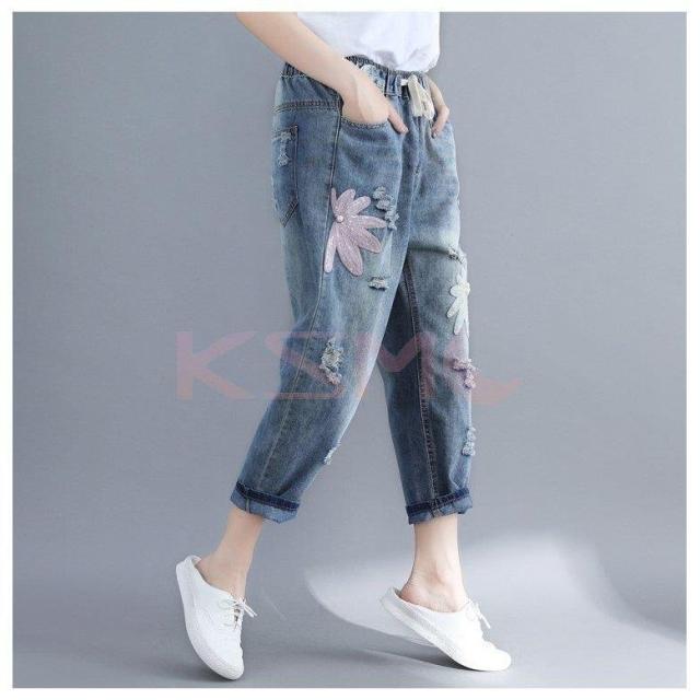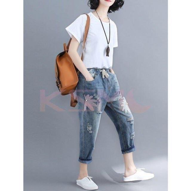 デニムクロップドパンツ ポケット レディース九分丈パンツ ダメージ加工デニムパンツジーンズ夏カジュアル ボトムス