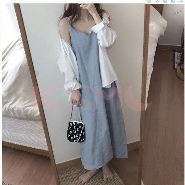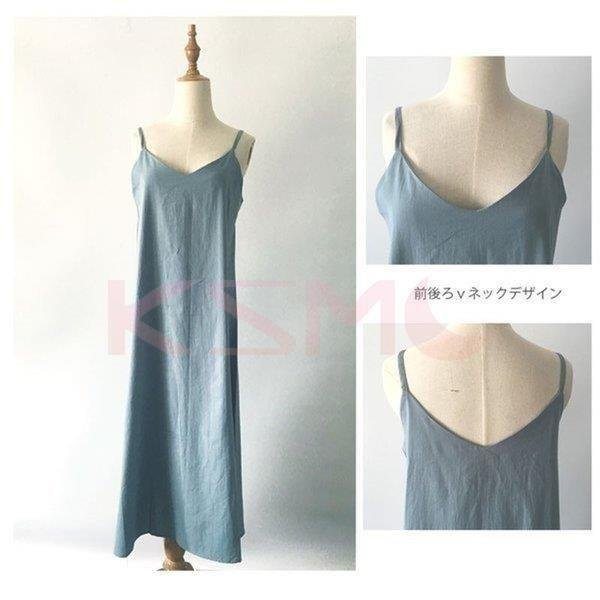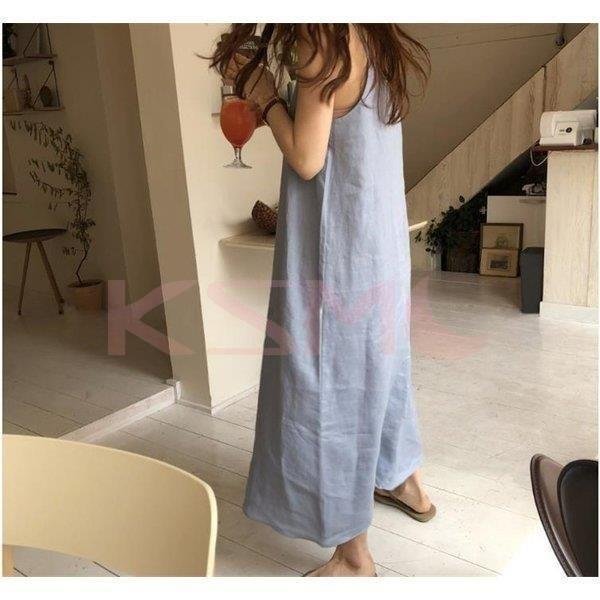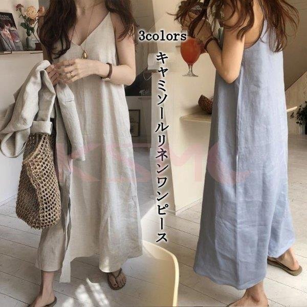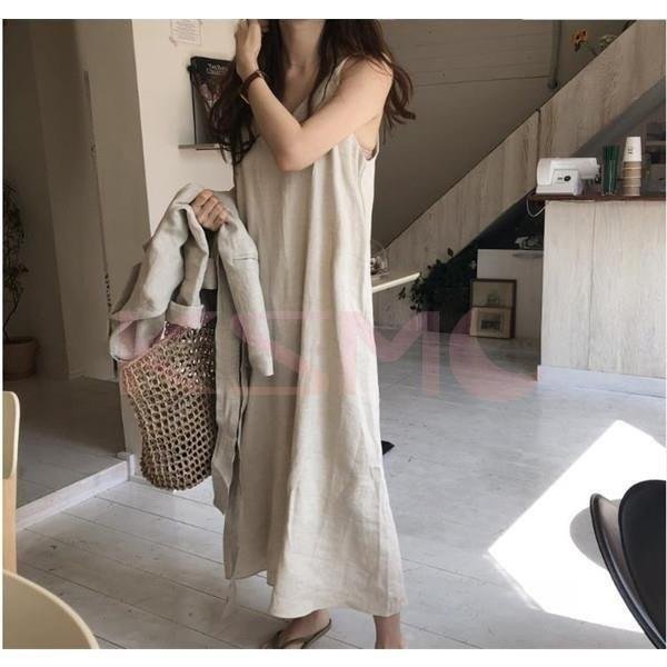 ワンピース レディース キャミソール マキシワンピース ノースリーブ マキシ丈 体型カバー ゆったり 綿麻混 無地 インナーワンピース 夏 シンプル
