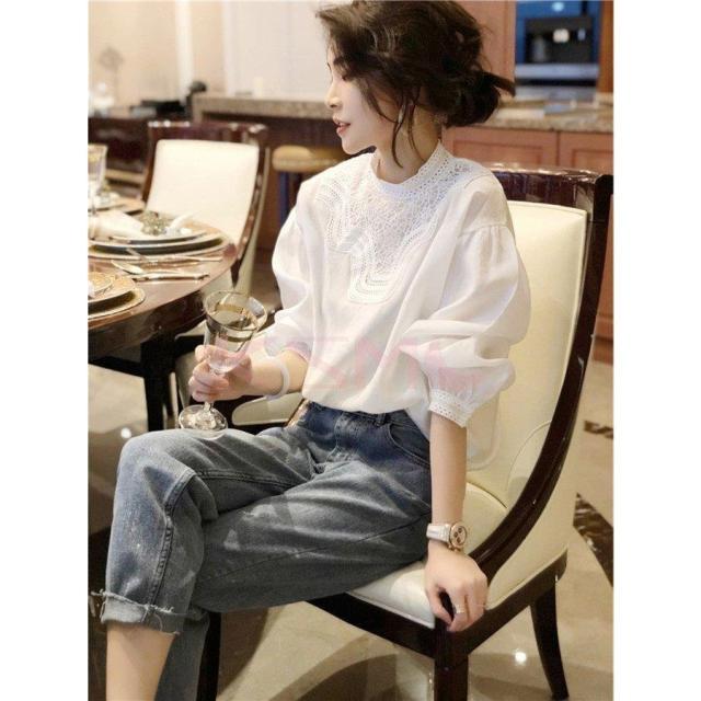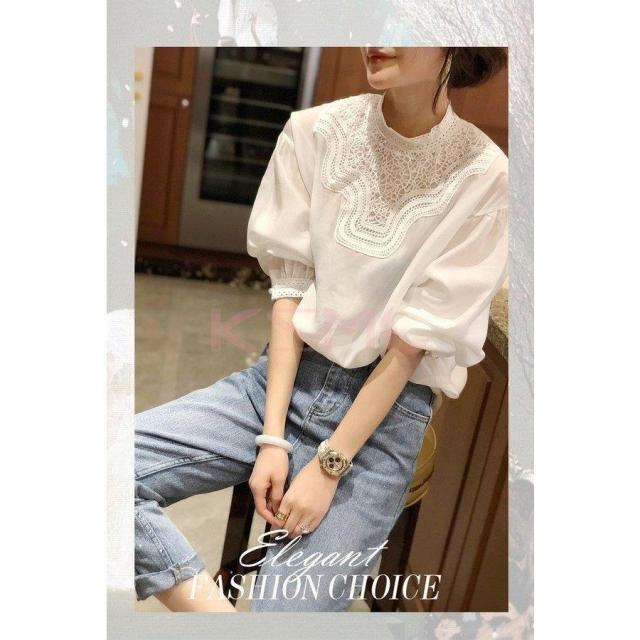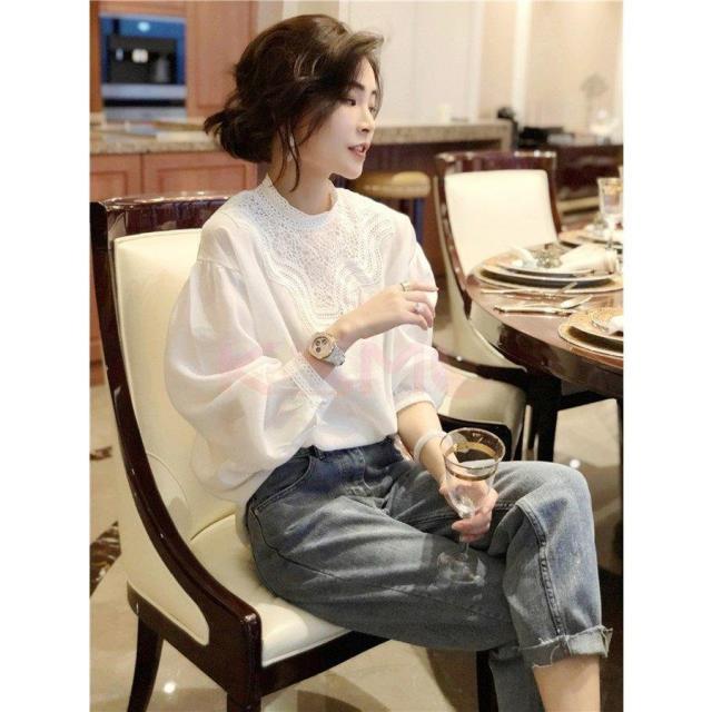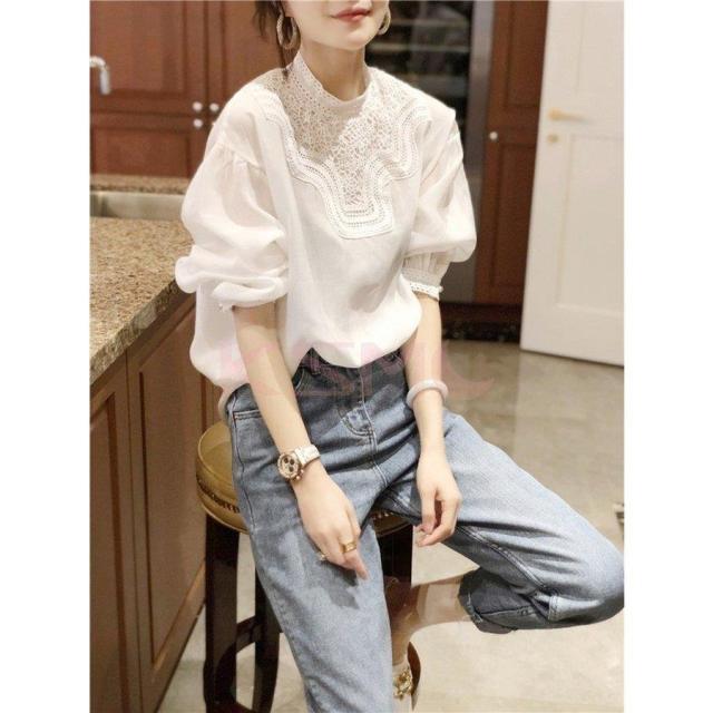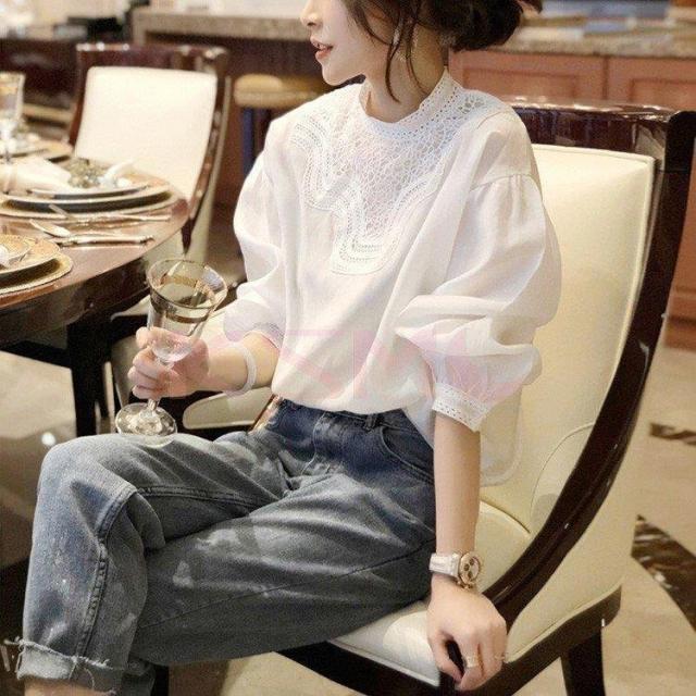 ブラウス レディース 40代 秋新作 オシャレブラウス 白Tシャツ 長袖トップス 白レースブラウス パフスリーブ 大人 上品 韓国風 大きいサイズシャツ 30代 50代
