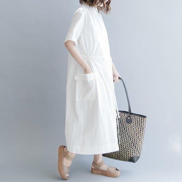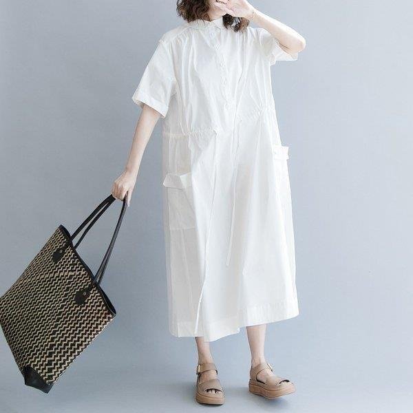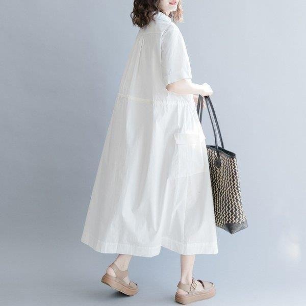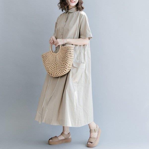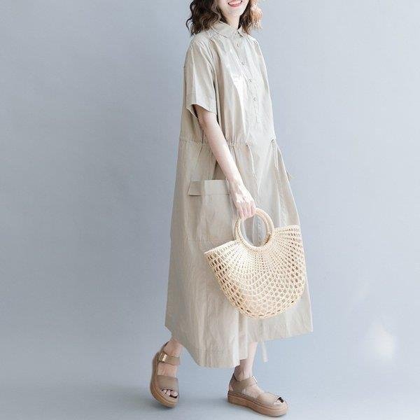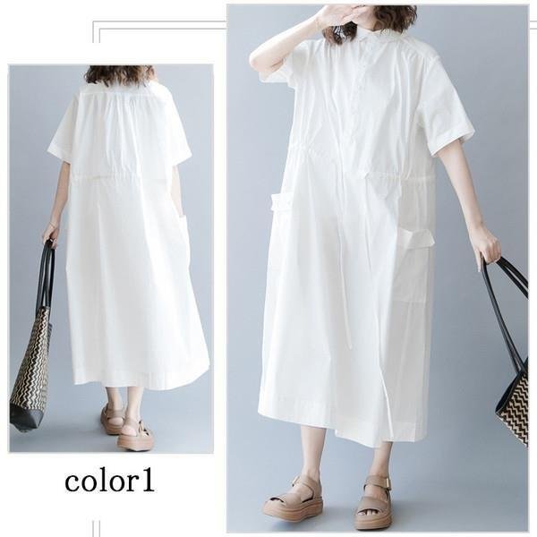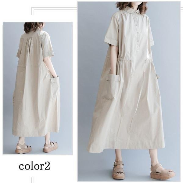 セール シャツワンピ ロングワンピース ロングシャツワンピース ワンピース レディース ワンピ オーバーサイズ 可愛い シャツ 半袖 森ガール 体型カバー 膝下